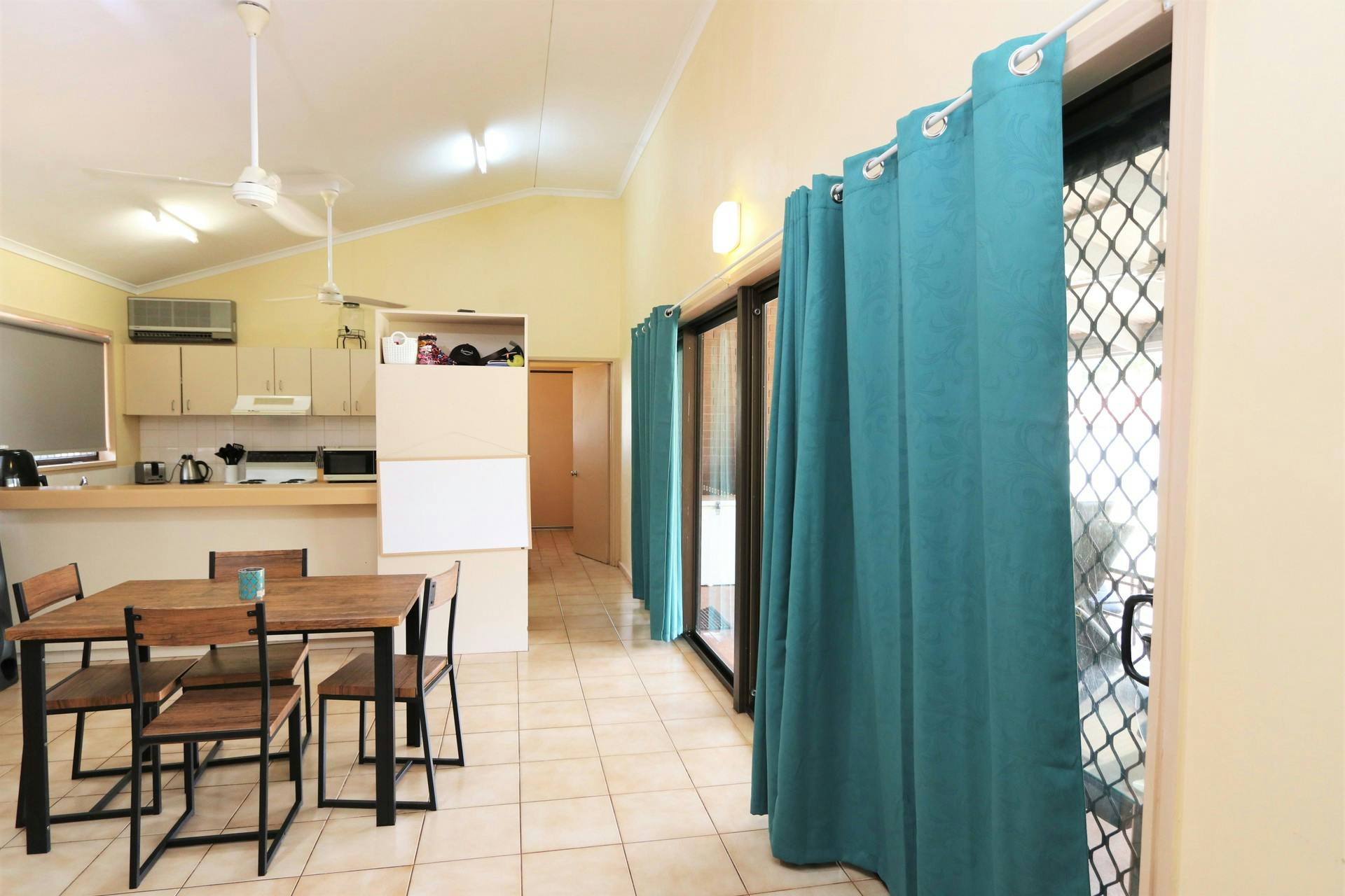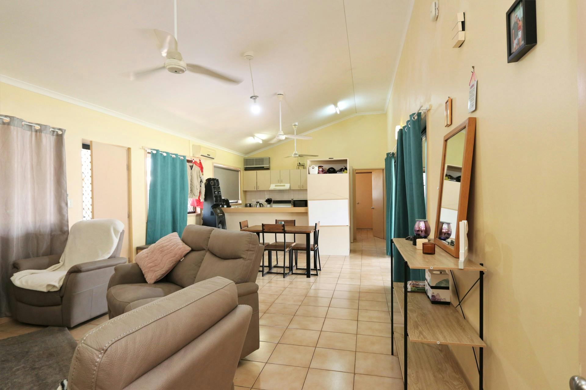 Step outside to a large undercover entertaining area with overhead fans — perfect for gatherings. The tidy bathroom offers a bath and separate shower, plus a separate toilet and ample storage throughout.