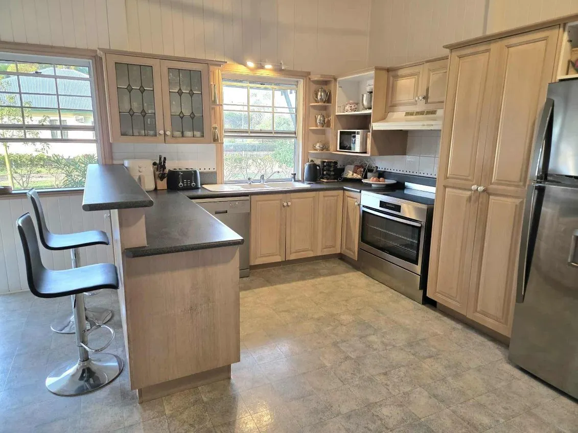 In the heart of Meandarra's friendly community, this grand family home provides generous living spaces for the entire family. The property boasts a brand new roof, solar system, 5 bedrooms plus office, 2 bathrooms, a parents' retreat with ensuite and walk-in robe, air conditioning, 5-bay carport, media room, expansive entertaining area with bar, fully fenced, power and lights to shed and carport, chicken run, huge shade house/ garden bed area, new hot water system, outdoor deck, covered patio/verandah, fern house, fire pit area. This home comes with some included household furniture and shed/tool itemsFeatures