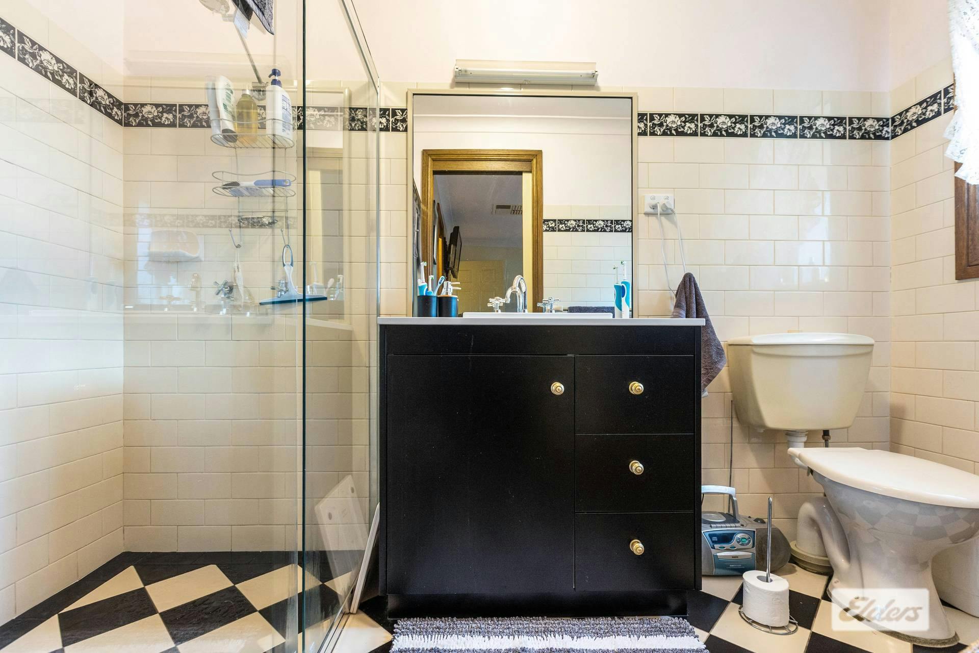 The main bathroom features a separate bath and shower, separate toilet and generous under-sink cabinetry.