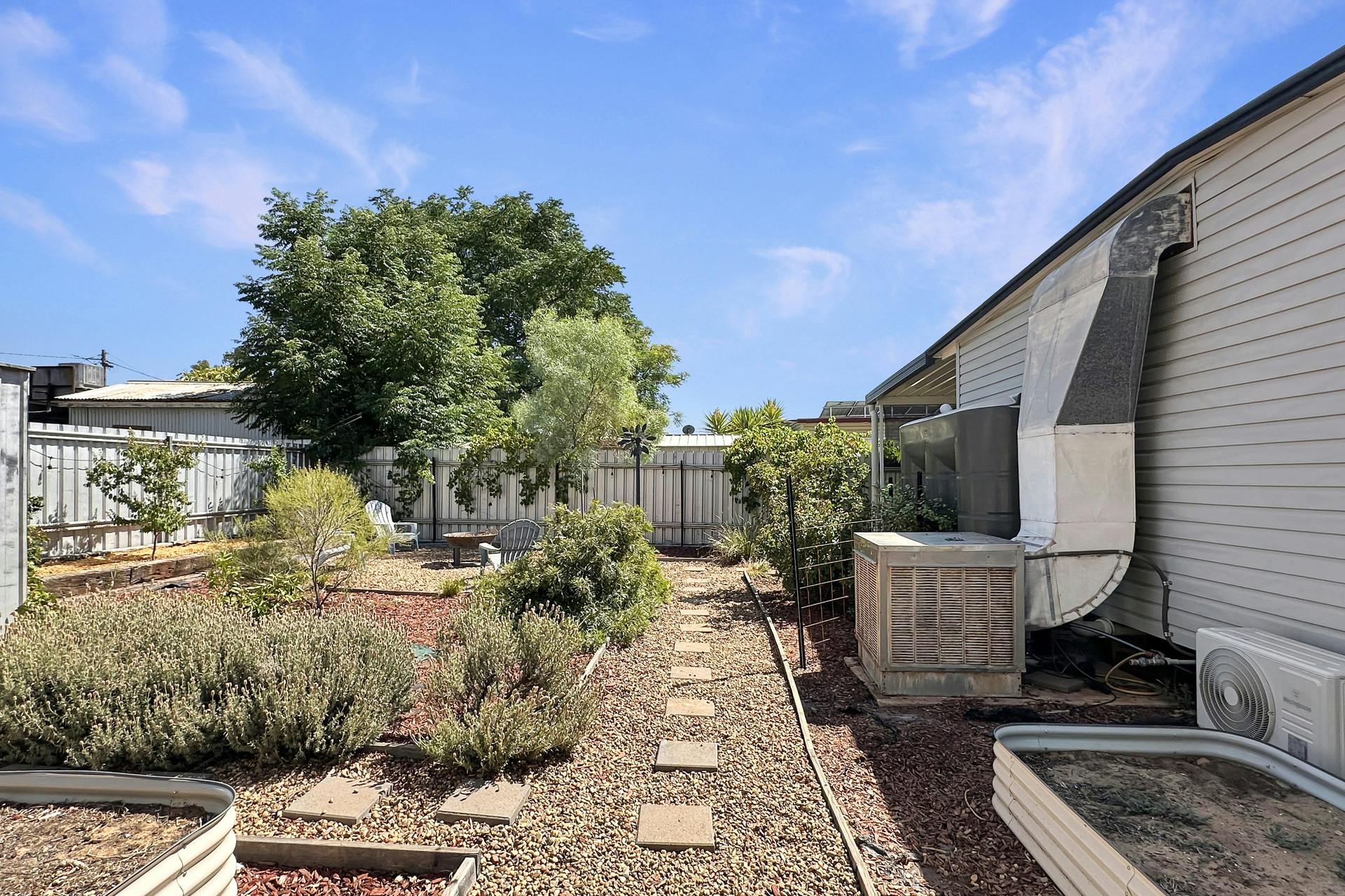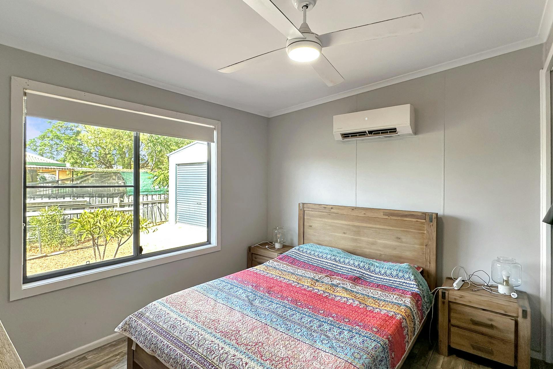 Climate control is covered with evaporative cooling and a split system unit within the main bedroom.