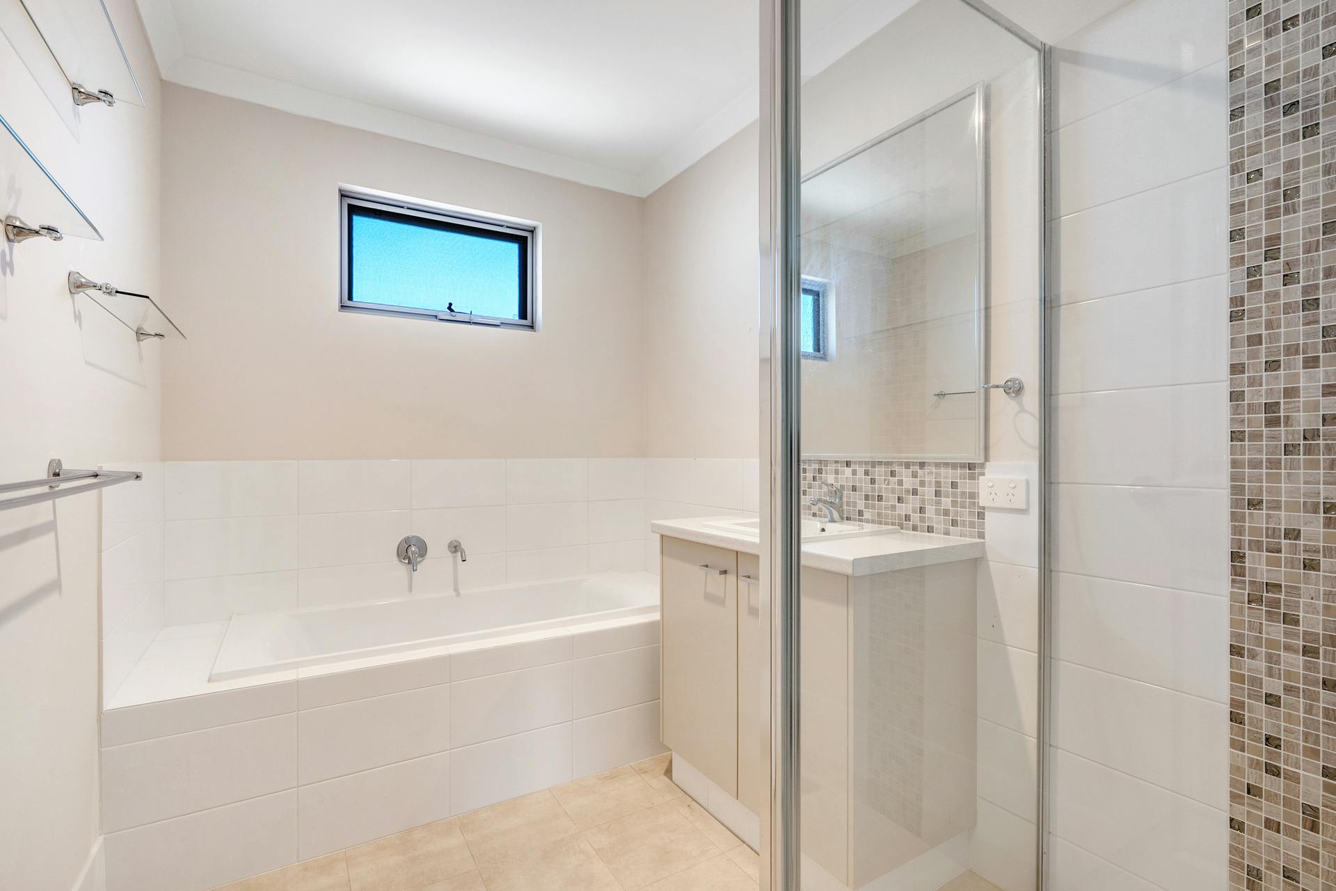 Moving to the upper floor and your master suite is carpeted with a double robe, and another efficient reverse cycle air conditioning unit, with the ensuite equipped with a shower with glass screening, a vanity and WC. With bedrooms 2 and 3 also carpeted with built-in robes, while the guest bathroom provides a glass shower enclosure, bath and vanity, plus private WC.