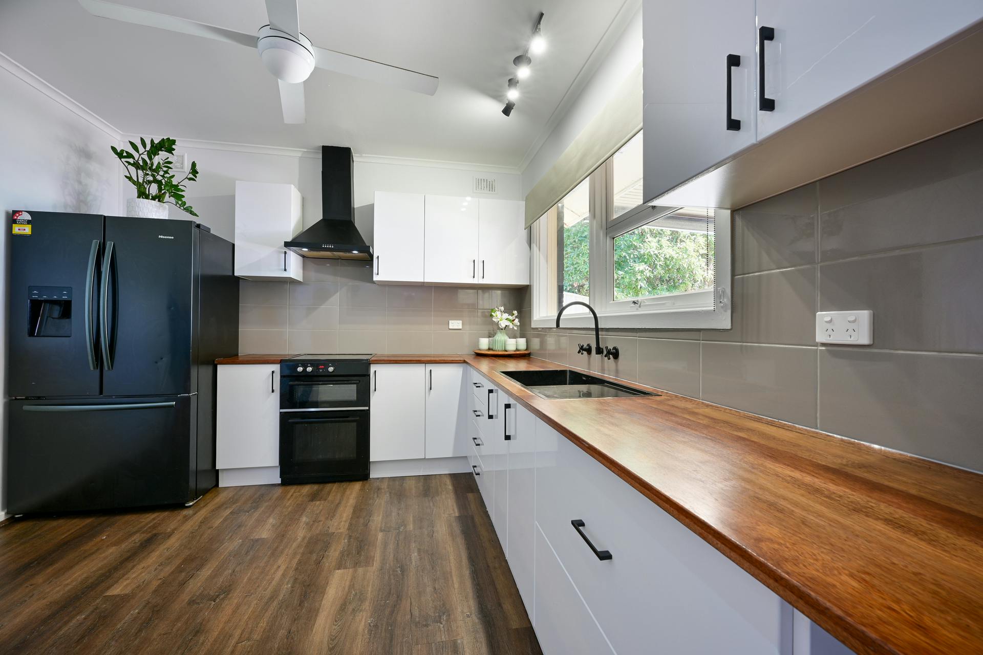 Brand new kitchen just installed, electric appliances and ceiling fan