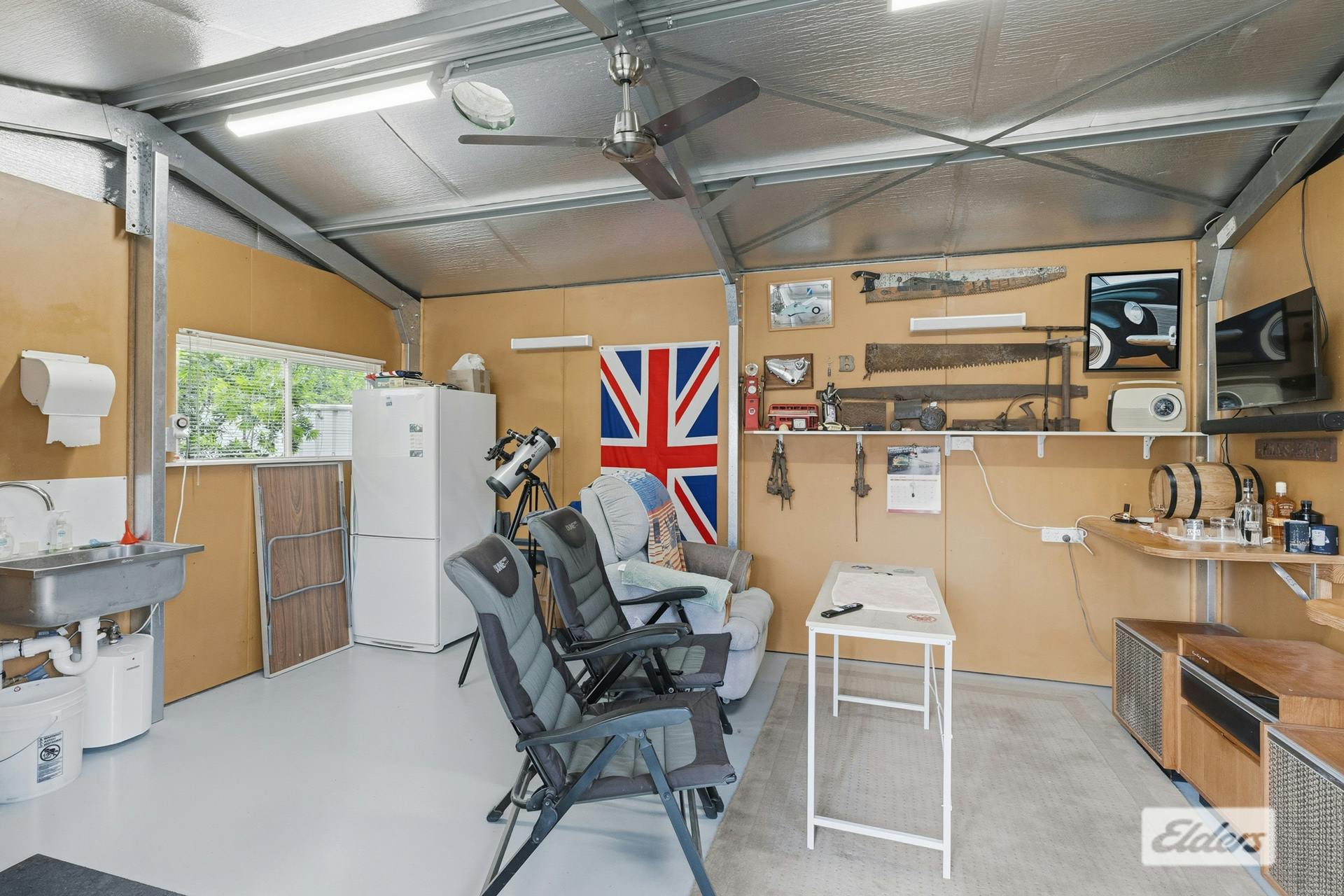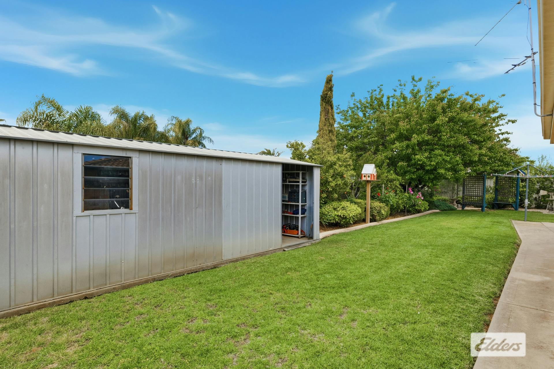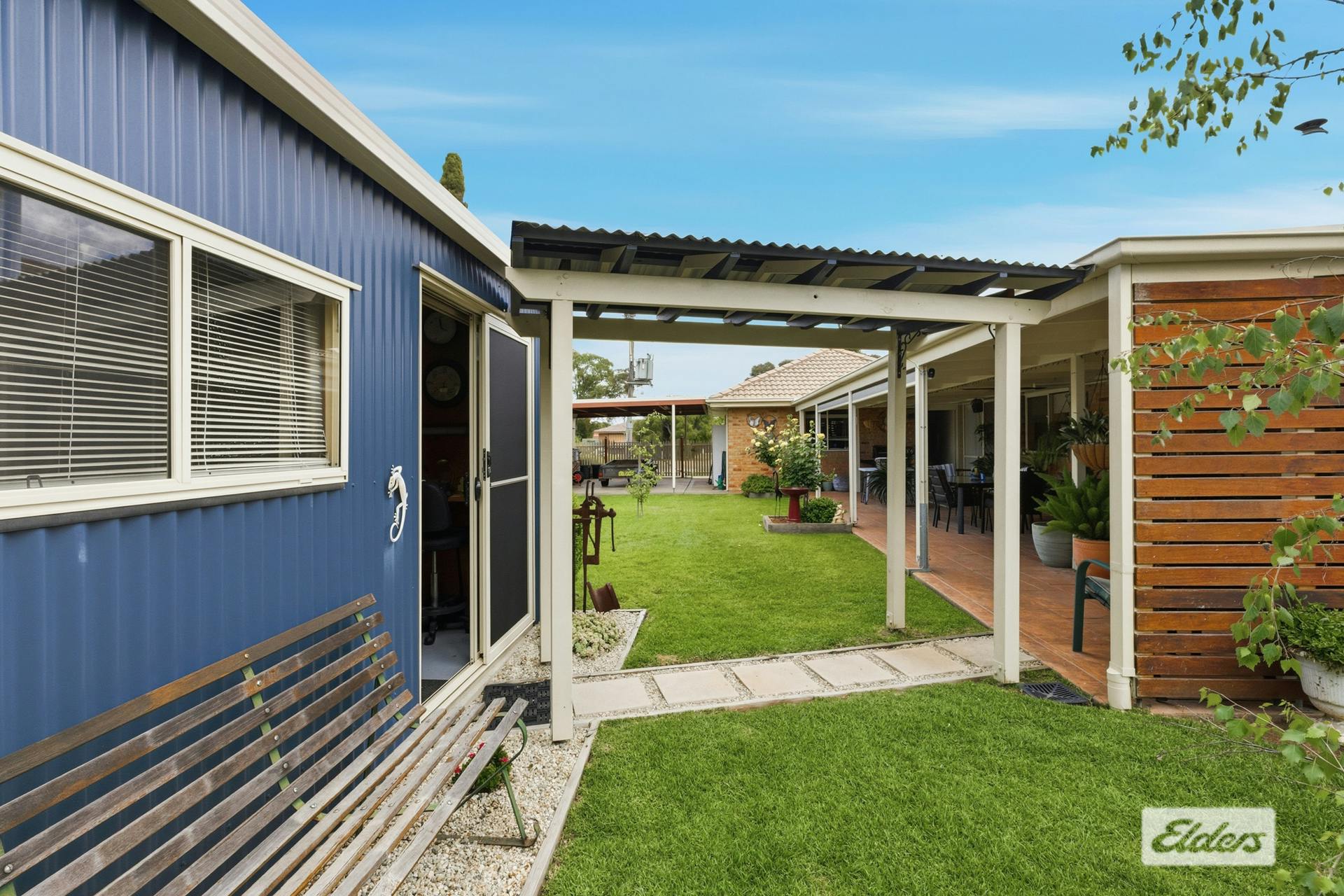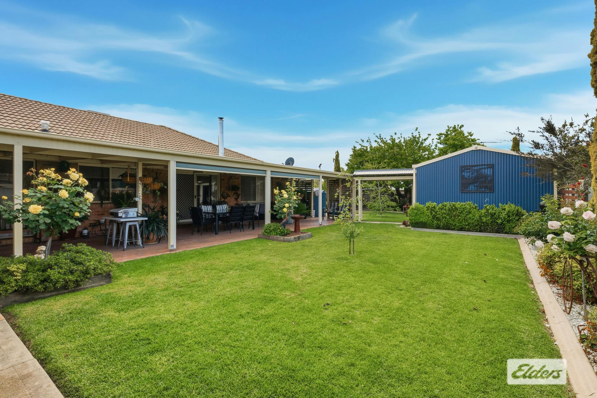 Outdoors, you will be greeted with an expansive undercover entertaining area with a ceiling fan, perfect for alfresco dining and summer gatherings, a double lock-up garage for security and convenience, an undercover carport and side access for trailers, boats, or caravans, a shed with toilet – ideal as a workshop or hobby space and an additional garden shed for storage.