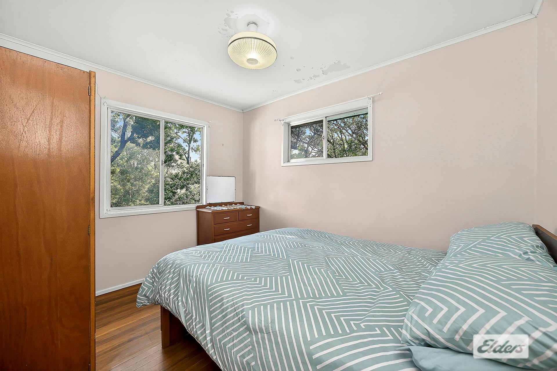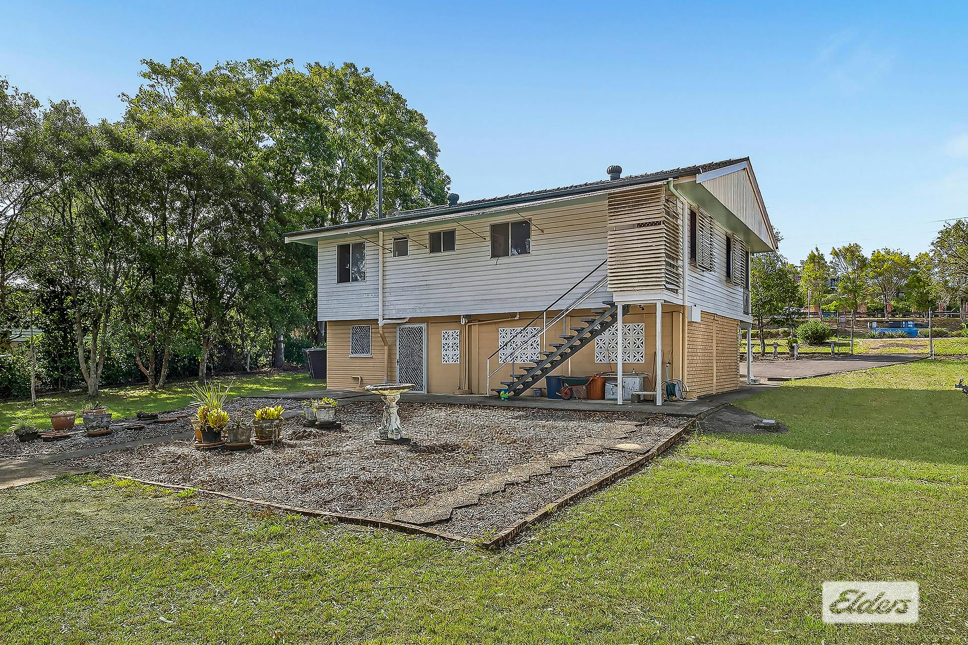 The existing highset home remains in its original condition. It comprises three bedrooms, one bathroom and a two-car garage underneath. The home is very dated and ready for transformation, making it ideal for buyers with vision who see the value in renovating or starting fresh on a substantial parcel of land.