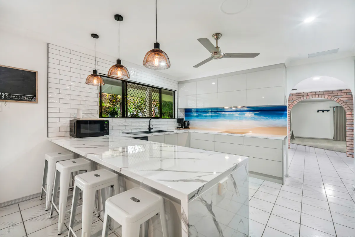 Main residence consists of four well-appointed bedrooms, master bedroom with ensuite, open planned living and dining featuring a brand-new kitchen and fully renovated bathrooms.