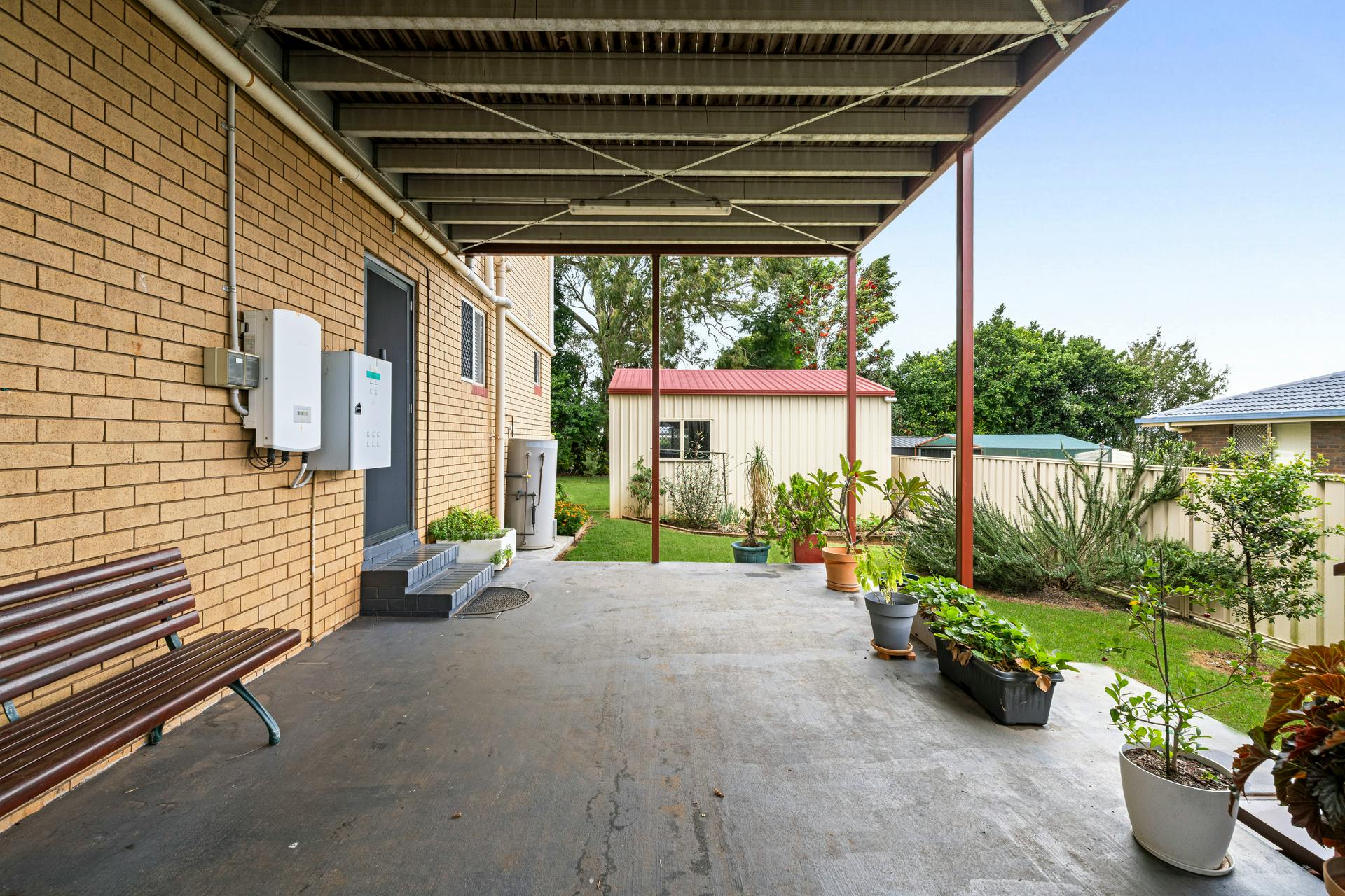 The side colourbond shed is powered and has a front roller door for vehicle access and it entails plenty of space for a workshop and storage. Whilst the front High Clearance Carport accommodates either four small cars or two large SUVs or work vehicles depending on your needs.