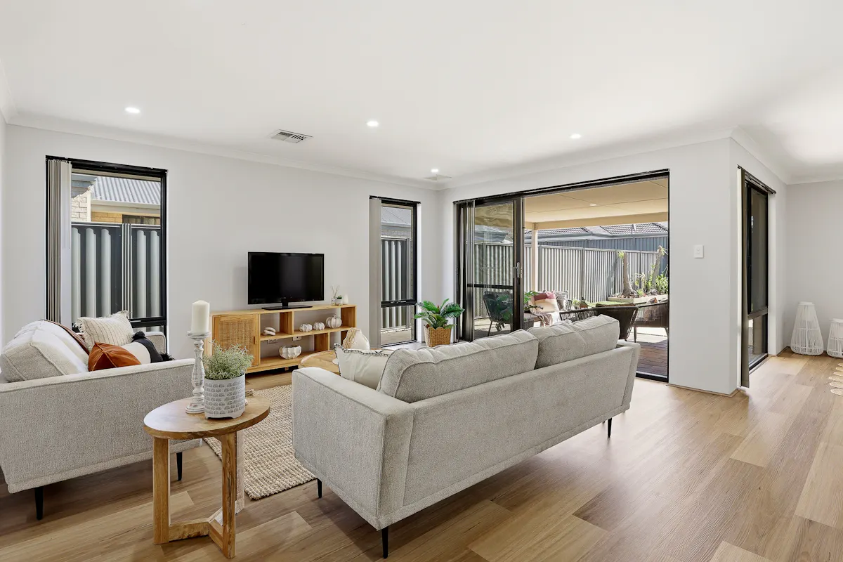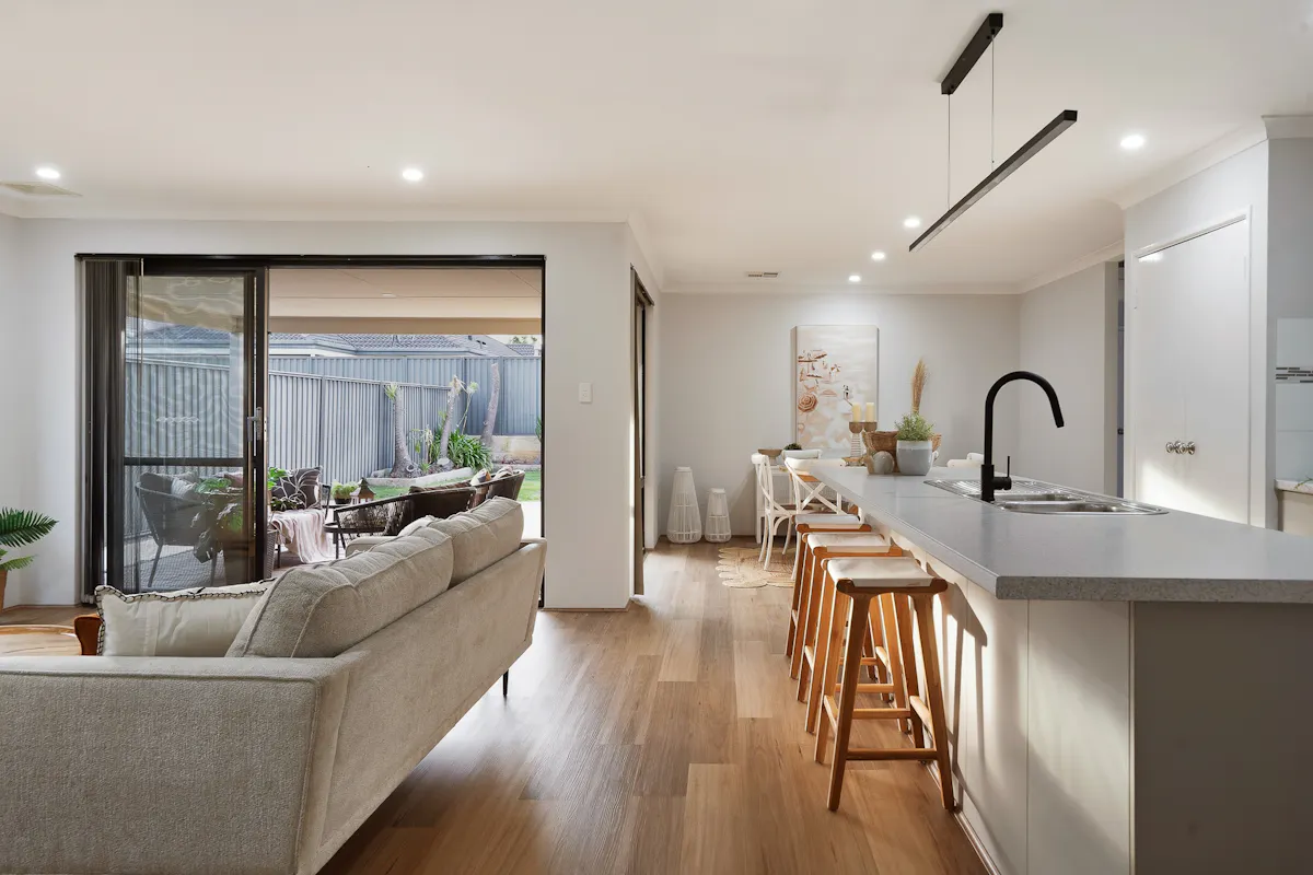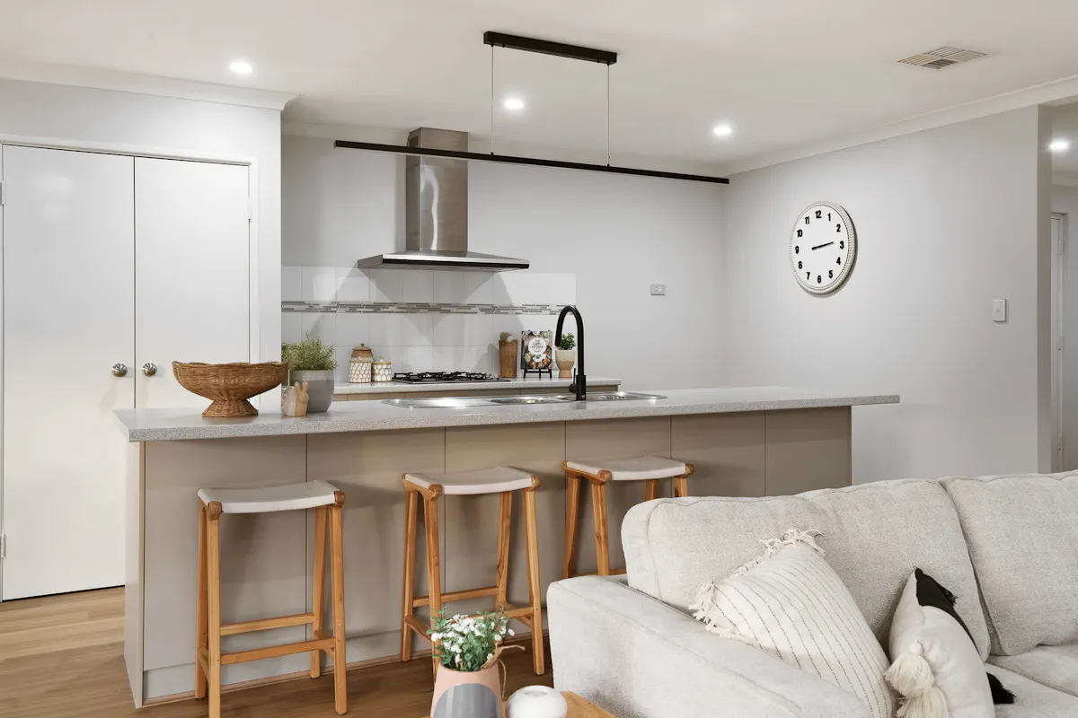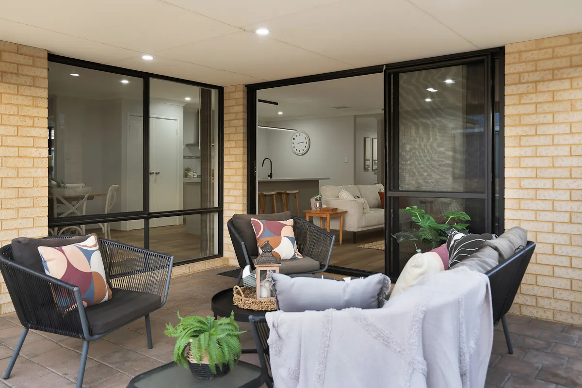 - Zoned living and dining around the central kitchen, with downlighting overhead and stacking doors to open the space up to your alfresco for uninterrupted indoor to outdoor access