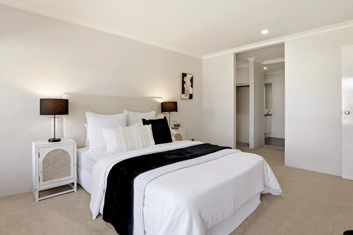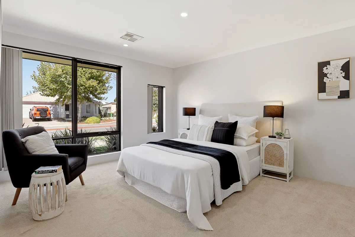 - Light and bright master suite to the front of the home, with a large window to the garden, dual walk-in robes and an ensuite with a shower enclosure, vanity and private WC