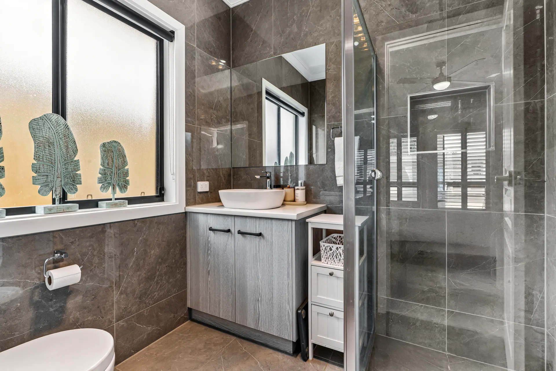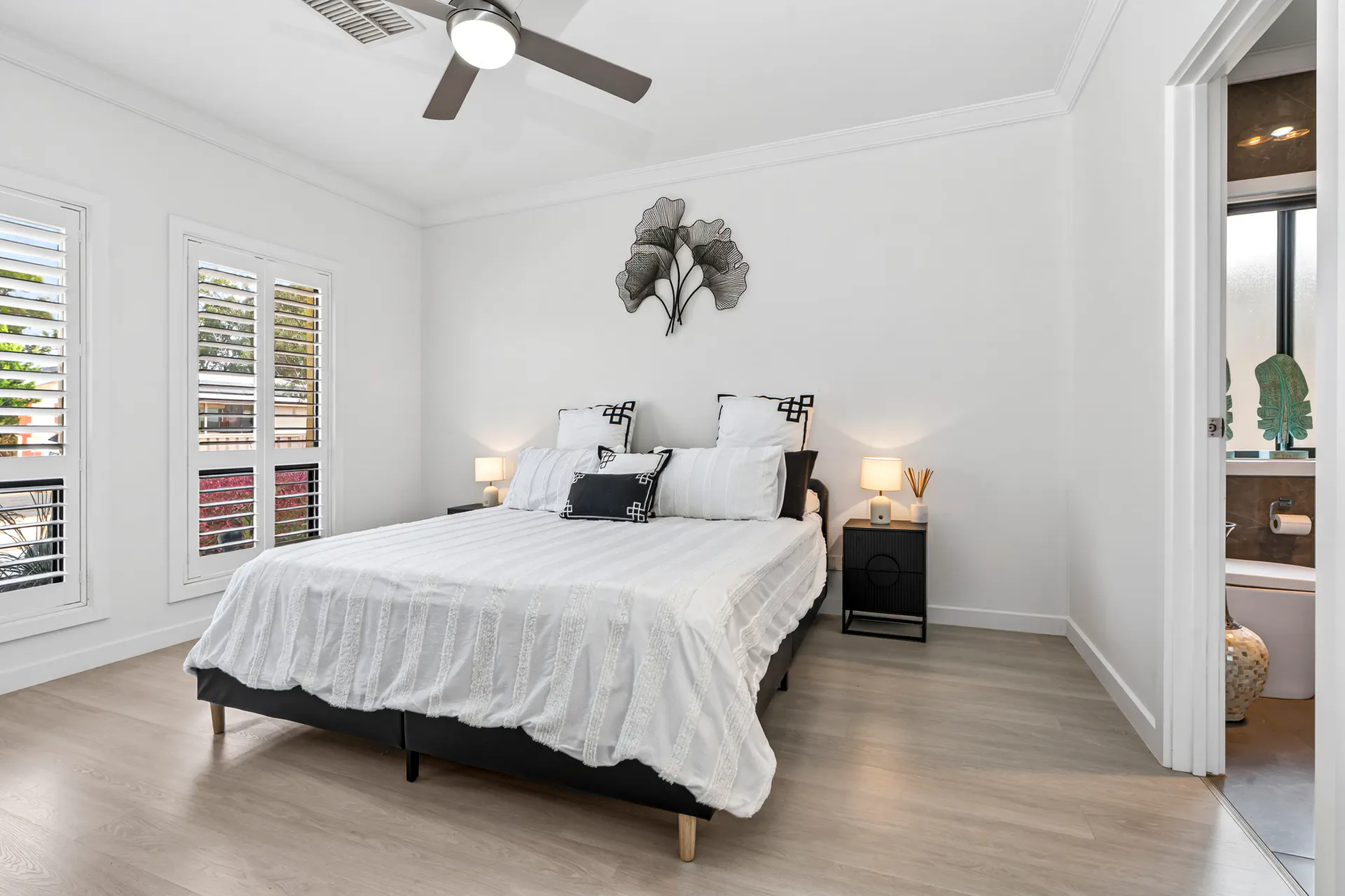 The master suite serves as a private parents' retreat, offering generous space, a walk-in robe, and a well-appointed ensuite. The remaining bedrooms are thoughtfully designed with built-in robes and ceiling fans, catering perfectly to family living.