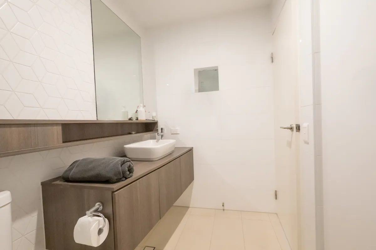 The bedroom offers absolute comfort, with soft carpet, another reverse cycle air conditioning unit and a large built-in robe. While the ensuite bathroom is equipped with contemporary inclusions, with a walk-in shower with glass screening, a floating vanity with storage and WC. Your private, North facing balcony is also reached via sliding doors from the bedroom, with tiling to the floor and glass balustrading to ensure uninterrupted views across the picturesque tree line beyond.