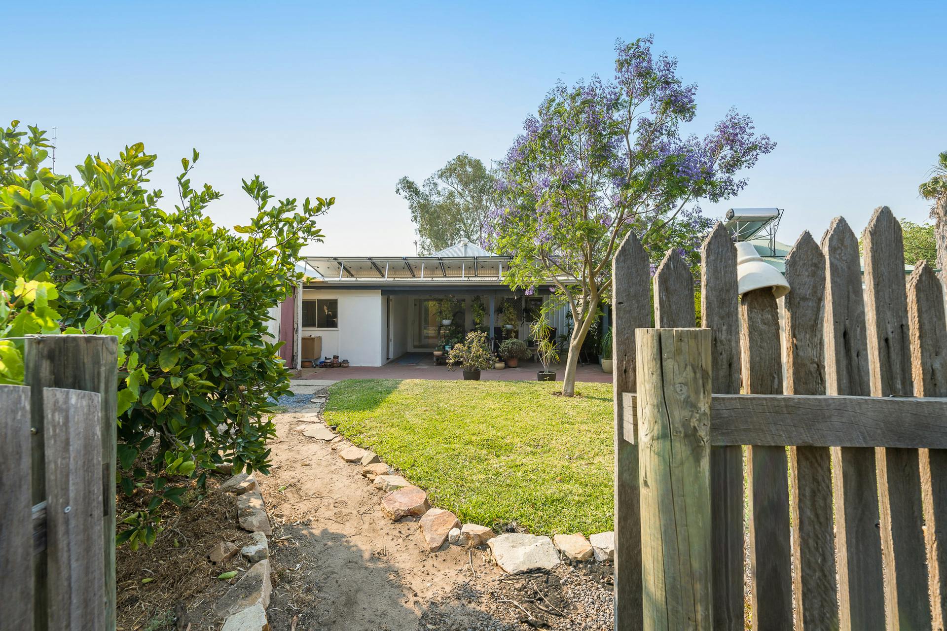 Solar panels help keep power bills down, adding to the home's overall appeal.