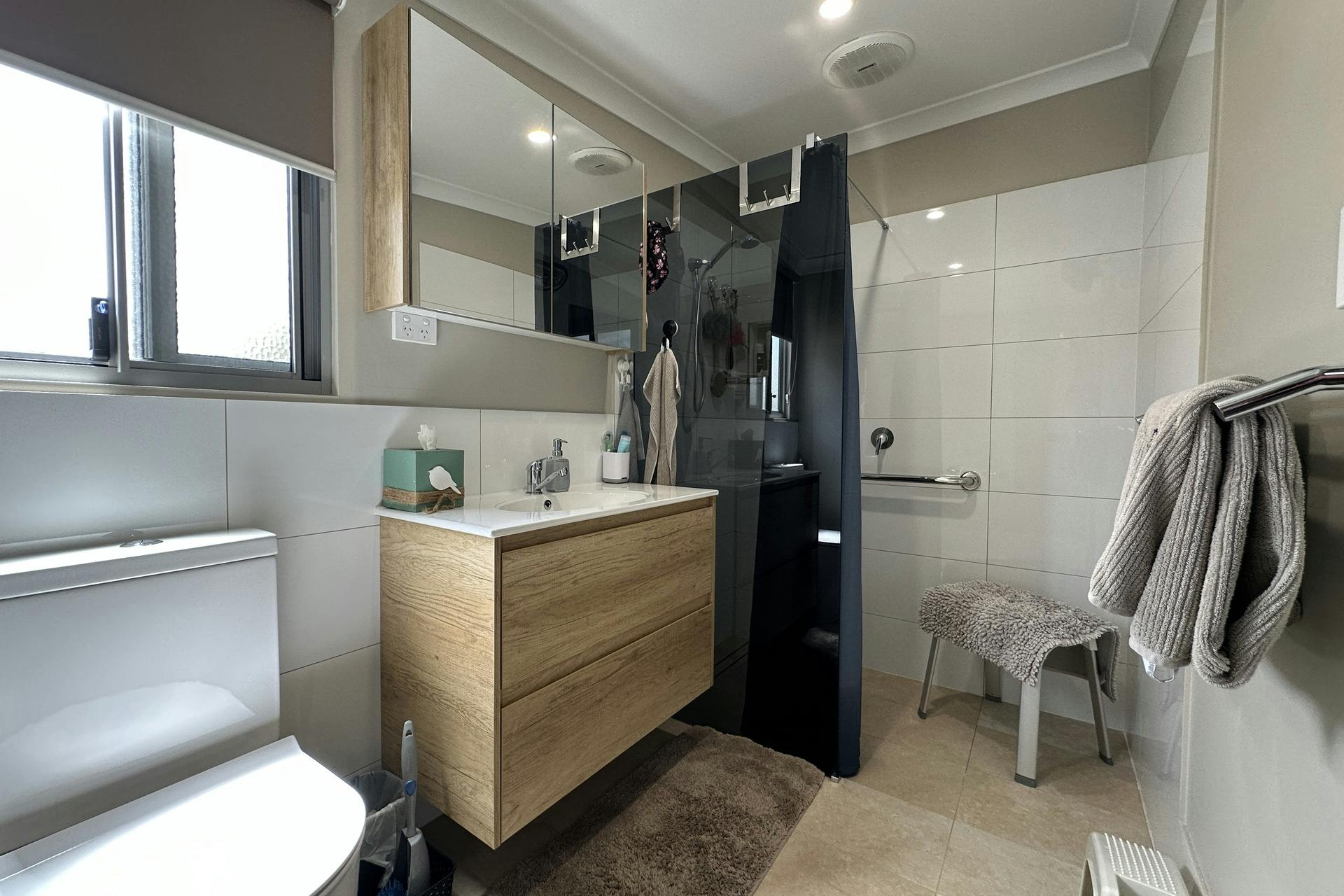 Another highlight is the powered shed with concrete floor and high clearance, offering an excellent workshop or storage capacity. The home is enhanced by security cameras and easy care reticulated gardens.