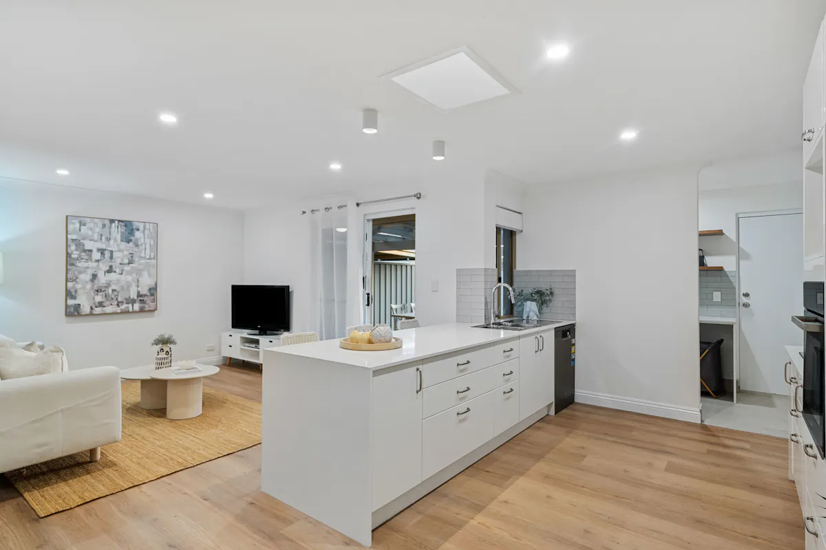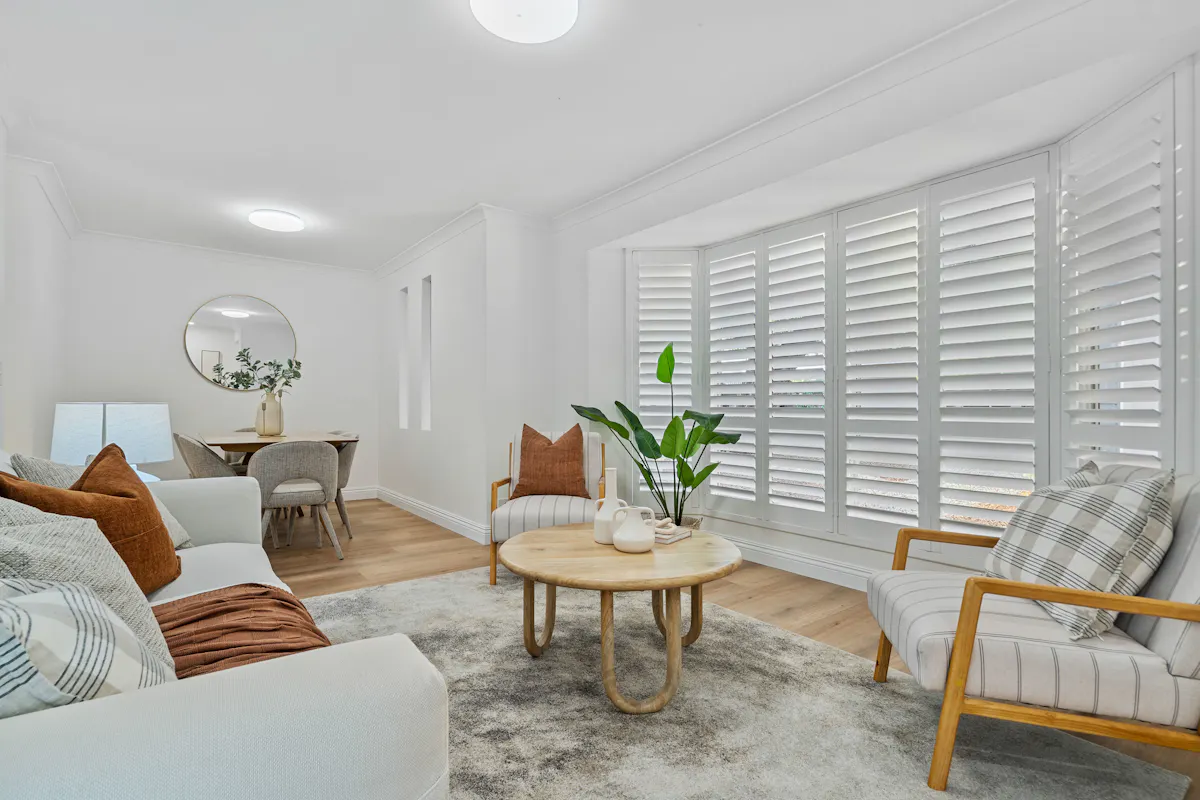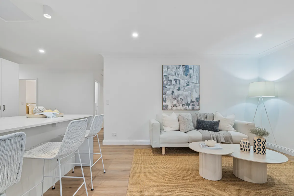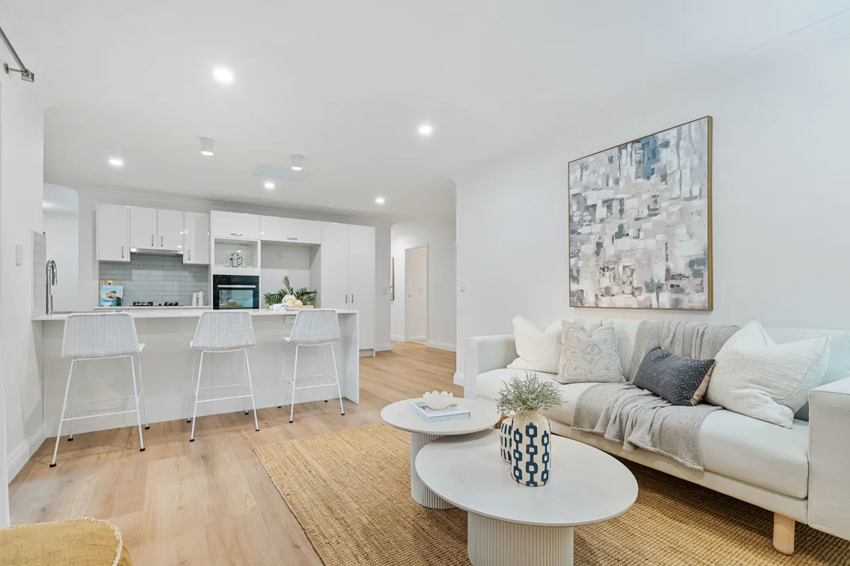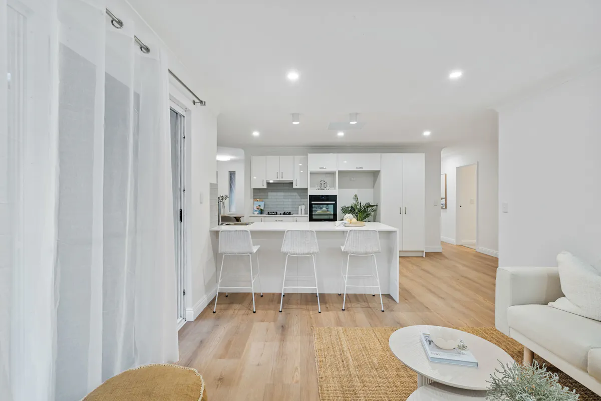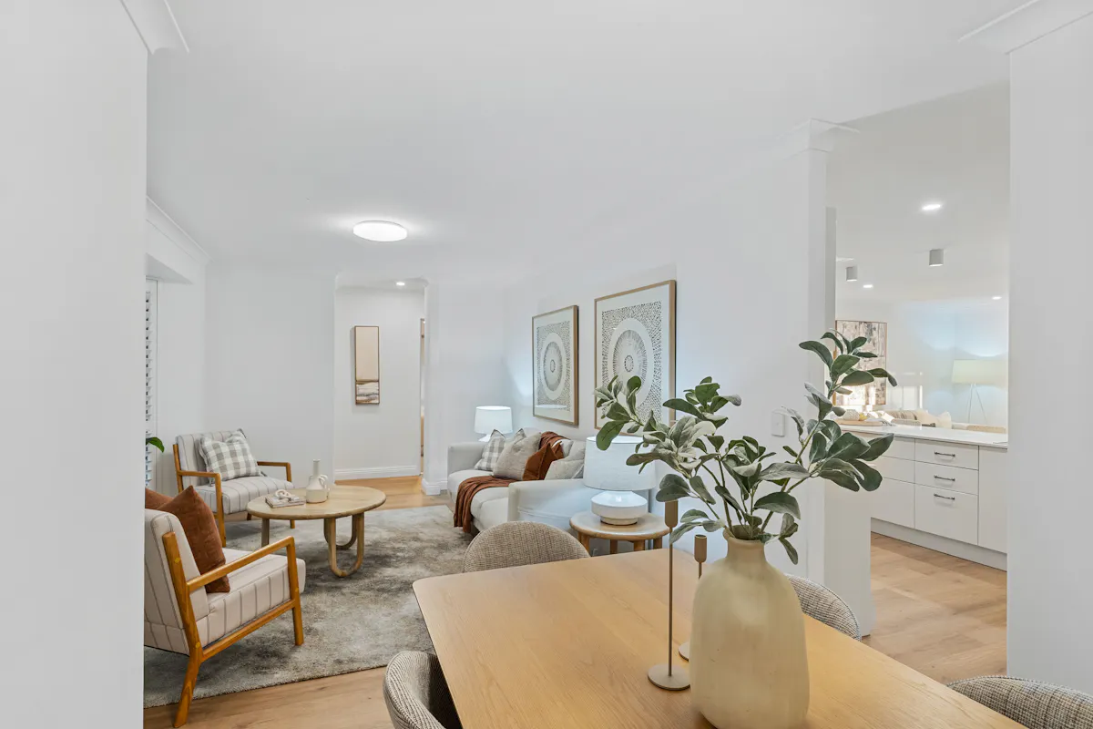- Light-filled open-plan living and dining areas