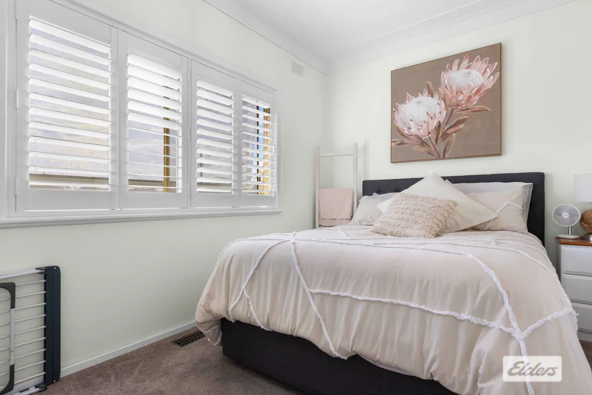 Bedroom 3 has vinyl timber flooring, planation shutters and good lighting.