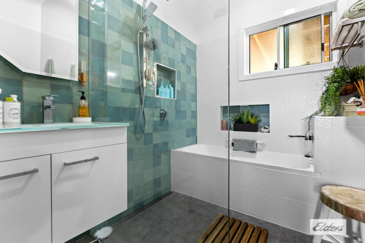The main bathroom has been recently renovated with feature tiles, wash basin and mirror, dual shower heads, bath and good lighting.