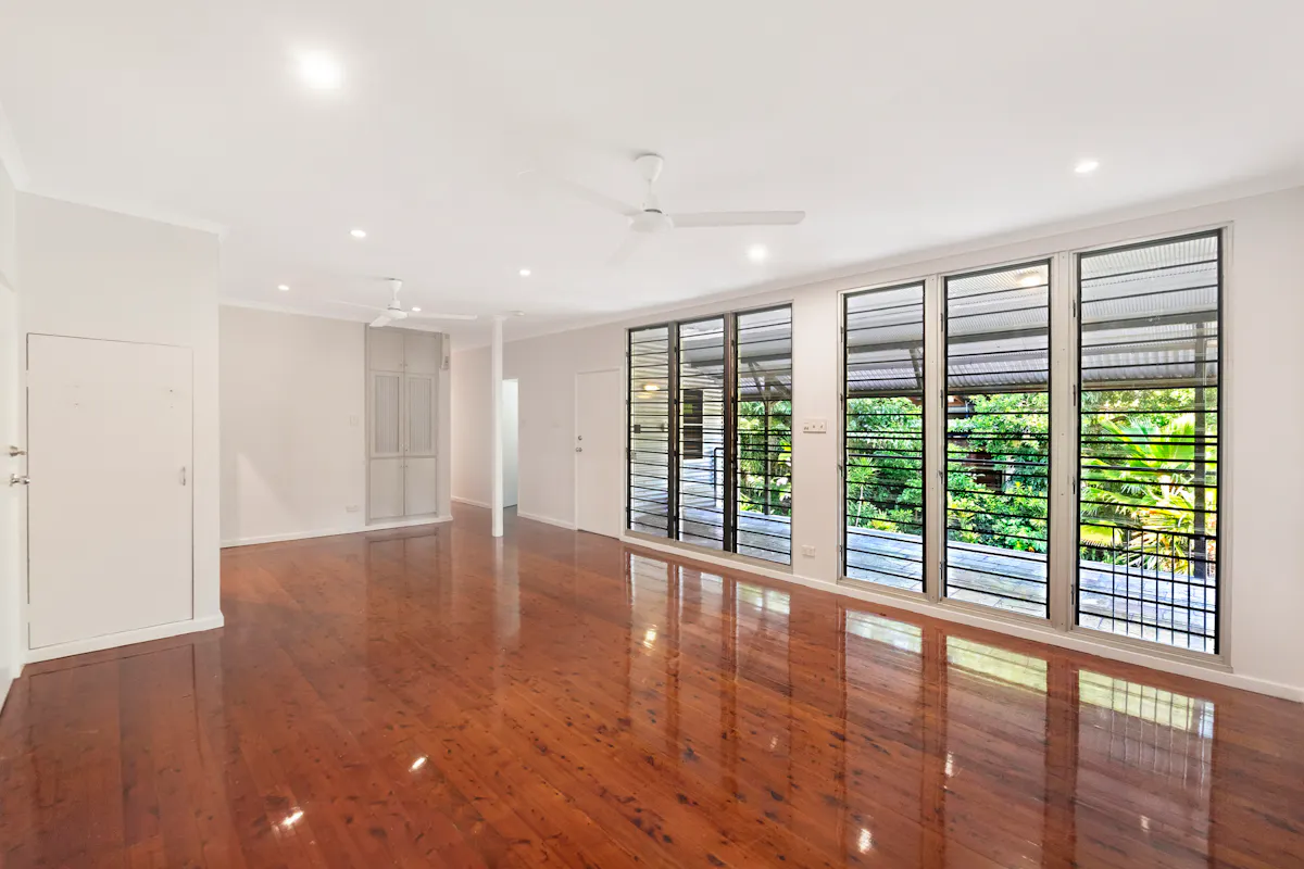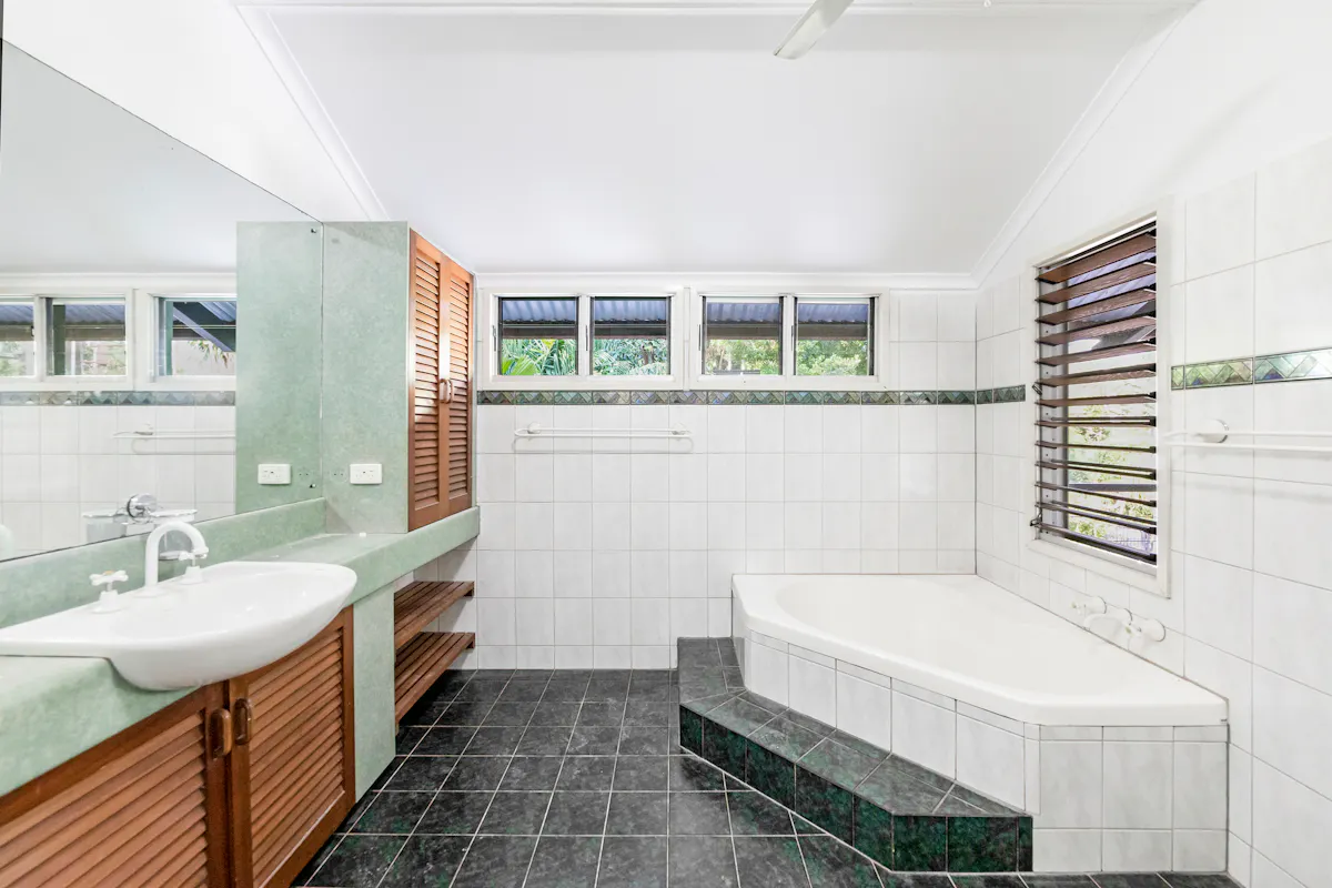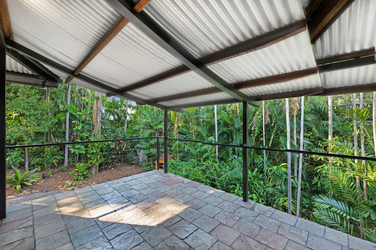 Set amongst a sprawling tropical oasis of towering shady trees and landscaped gardens is this secluded and private five-bedroom elevated family home situated on a generous 1,011m2 corner land allotment. Comprising of four great sized bedrooms upstairs and a large separate one-bedroom unit on the ground level, there is also an additional tiled and airconditioned multipurpose room which could easily be utilized as a sixth bedroom for guests, rumpus room or home office. Enjoy gorgeous tree top views and scenery from every room including the two alfresco balconies, one of which overlooks the lovely inground swimming pool.What we love about this home:
