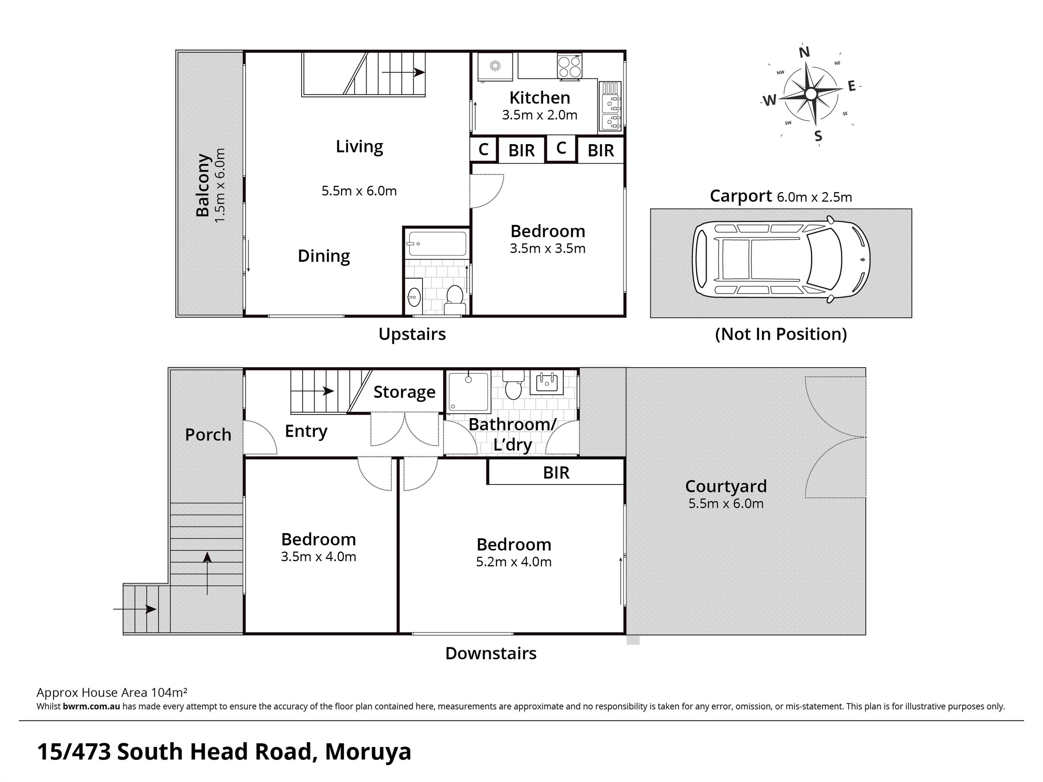 Positioned in a tightly held pocket of Moruya Heads, this two storey townhouse presents a smart addition to any property portfolio. Set close to the Moruya Surf Club and the golden sands of South Head Beach and Shelly Beach, it offers the lifestyle renters look for all year round, while keeping ownership simple and low maintenance. It is also conveniently located near the new Moruya Hospital precinct, adding another major drawcard for tenants and long term growth.Upstairs is designed for relaxed living, with an open plan lounge and dining zone that flows to a sunlit balcony. The practical kitchen connects easily to the living space, and a generous bedroom with built in storage sits on this level alongside a full bathroom. Downstairs provides excellent separation, featuring two well sized bedrooms with built in robes, a second bathroom combined with laundry facilities, plus extra storage. Step outside to a private courtyard, ideal for easy outdoor enjoyment and minimal upkeep. A dedicated carport completes the package.