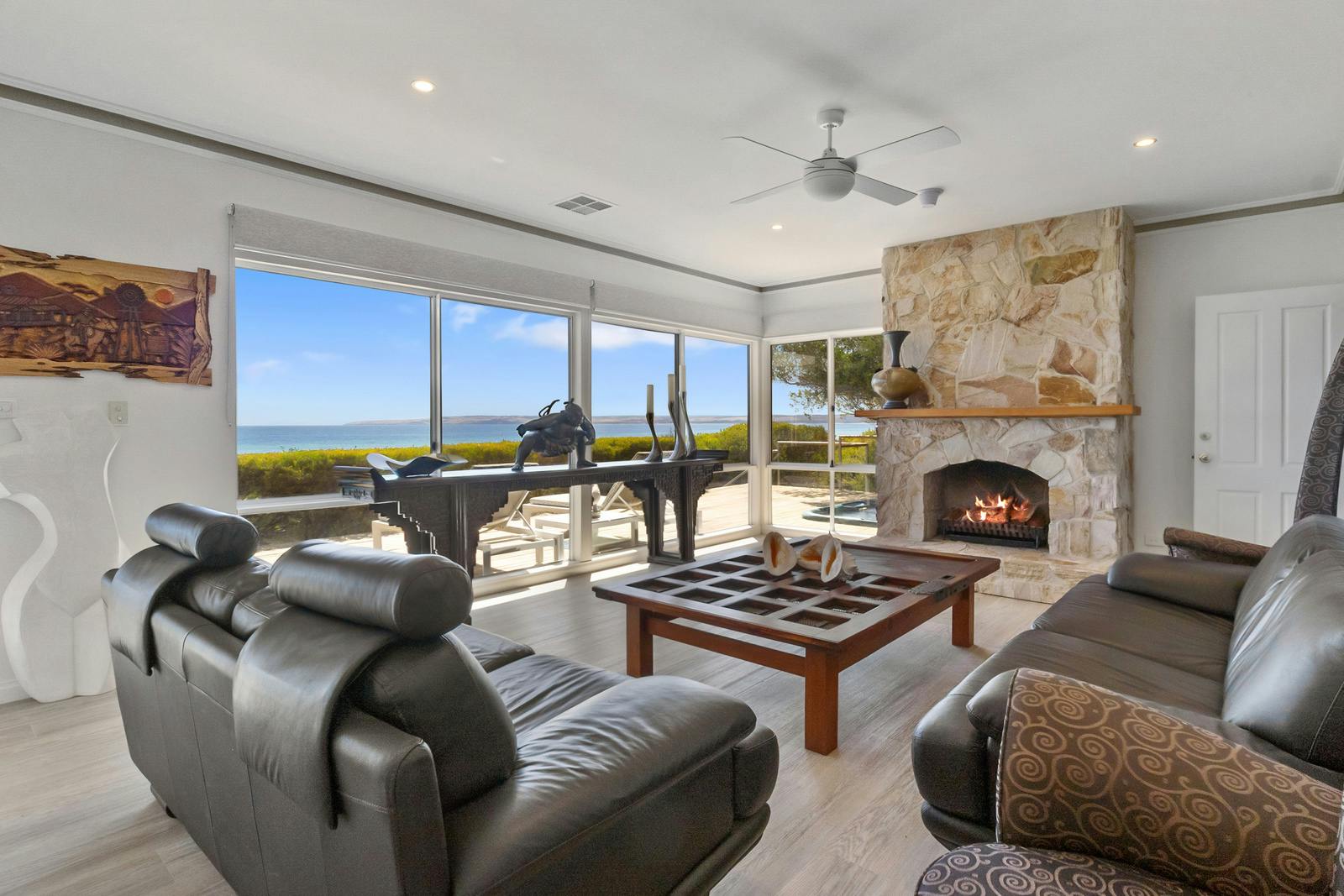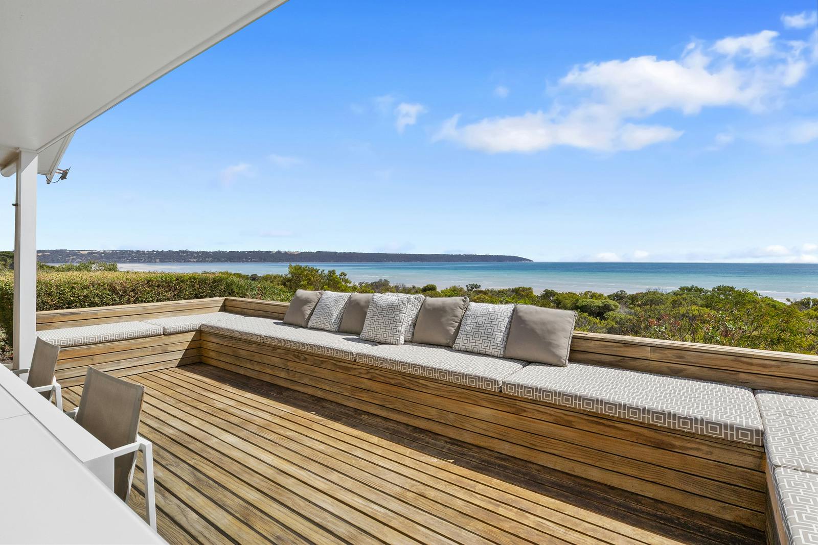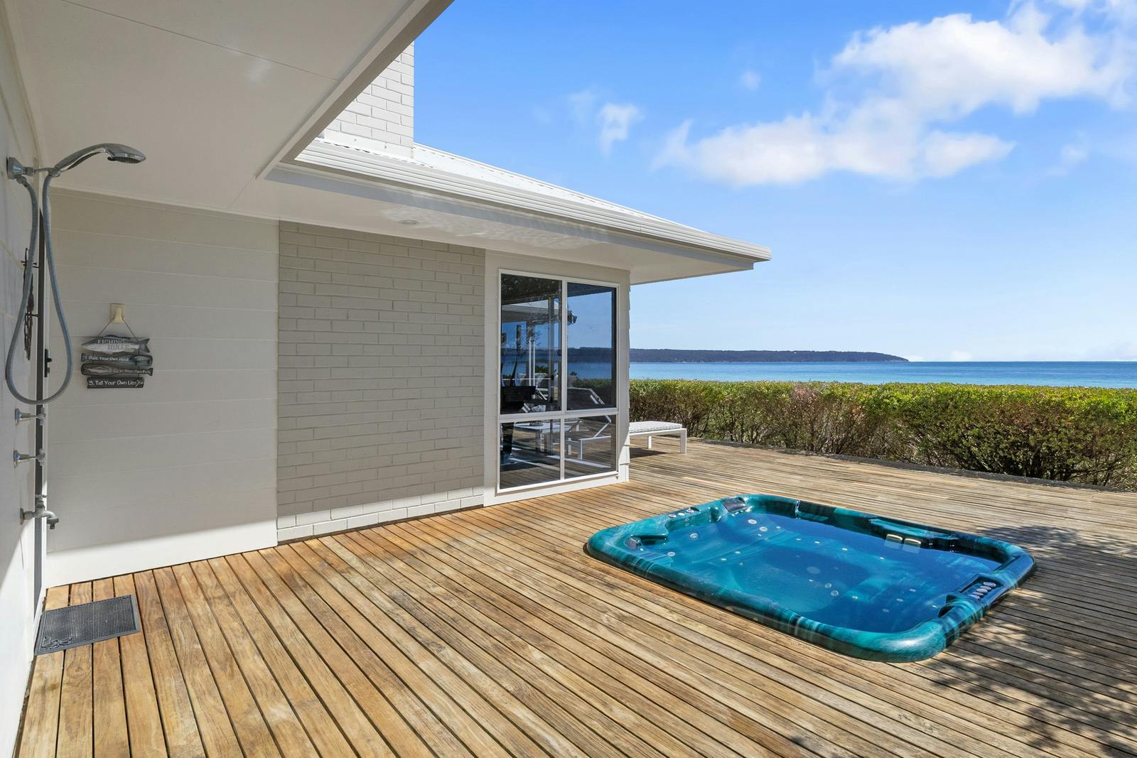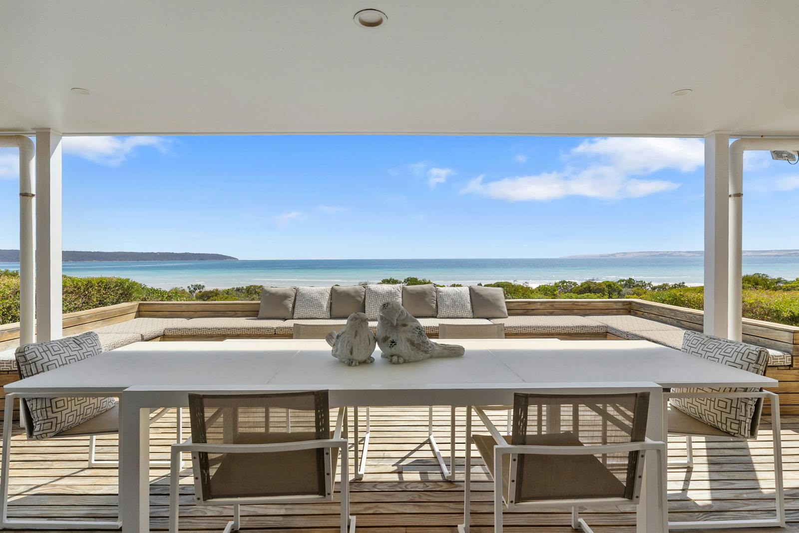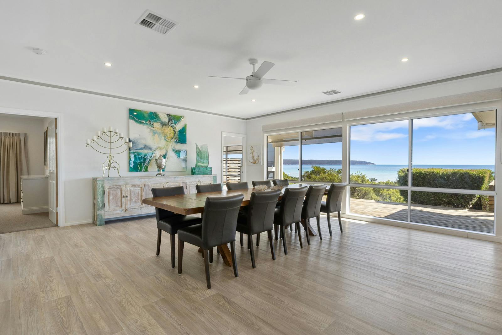 - Massive open space living area/kitchen leading to the deck overlooking the beach and Eastern Cove.