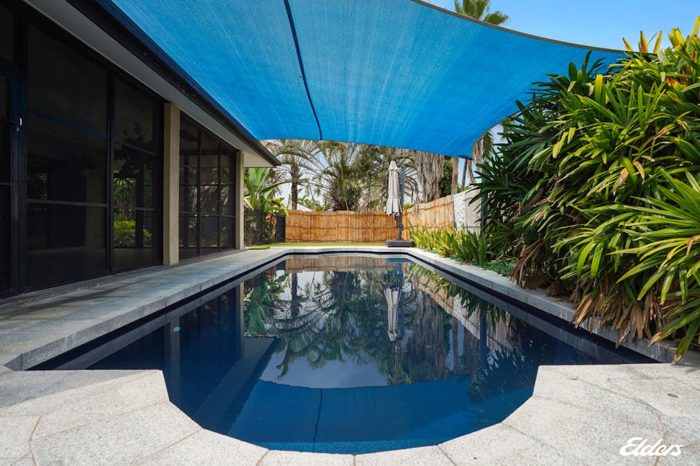 Lovely enclosed verandah overlooks deep inground pool and easy-care yard