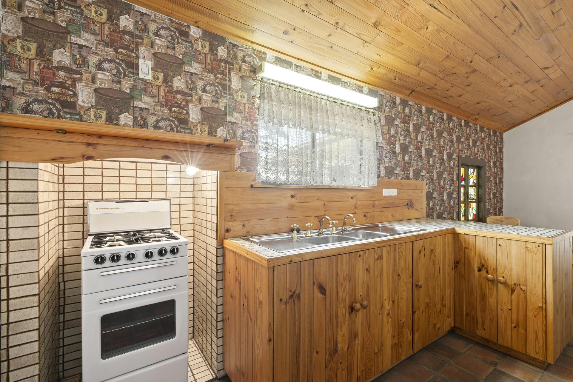 Wraparound verandas framed by established leafy gardens create privacy, street appeal, and a welcoming first impression. Inside, the country-style kitchen is practical and inviting, with space for casual dining.