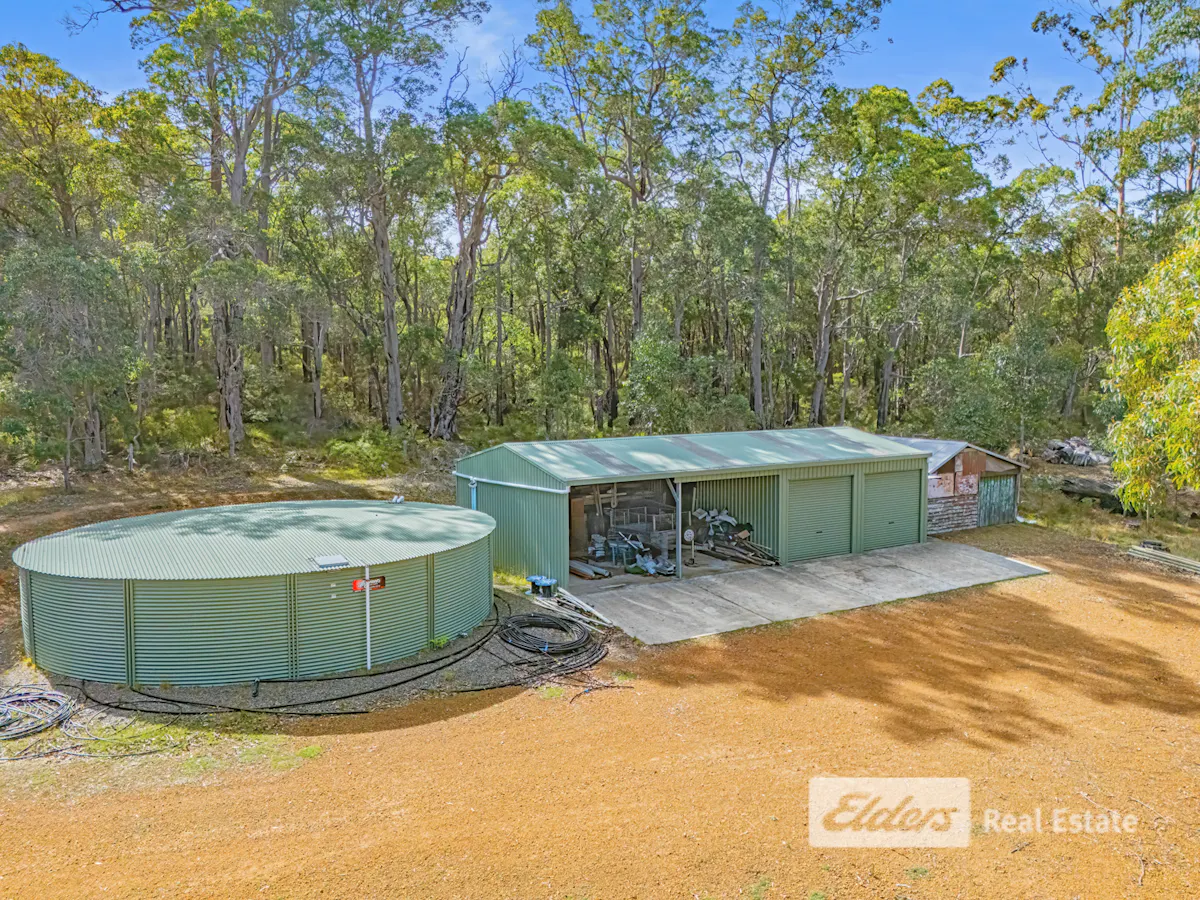 Beyond the home, the block continues to deliver. The northern portion is covered in natural forest, including your own pocket of karri-something pretty special and not easily found. A well set-up shed provides excellent storage or workspace, while the original dwelling and an additional cottage still remain on the property, opening the door to guest accommodation, rental potential, or creative future use.