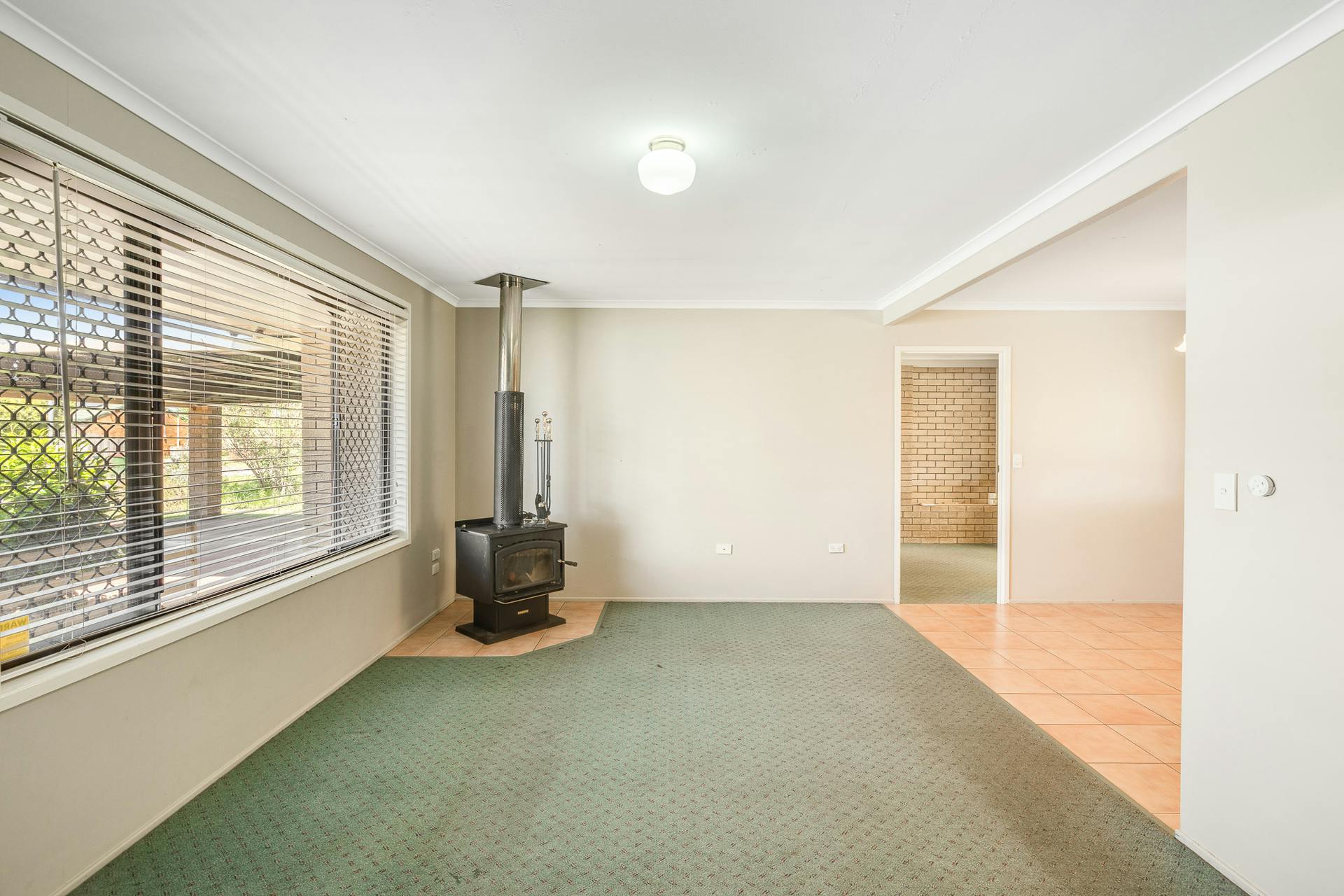 • Lounge room featuring a cozy wood heater