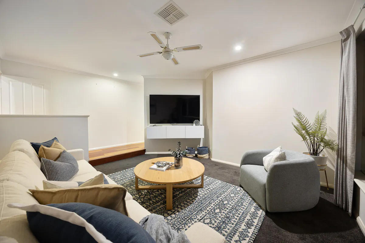 - Sunken lounge or theatre space, with soft carpet, a cooling ceiling fan and an open design for absolute comfort throughout
