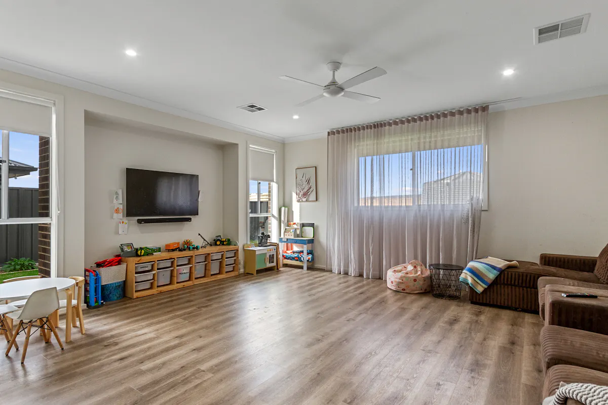 At the heart of the home, the open plan living zone is designed for both everyday living and entertaining. The well-appointed kitchen features ample pot drawers, a long island bench, 900mm oven, 5 burner gas cooktop, dishwasher and a walk-in pantry with convenient internal access from the double garage. Overlooking the dining, family area and out to the alfresco, this space truly connects indoor and outdoor living.