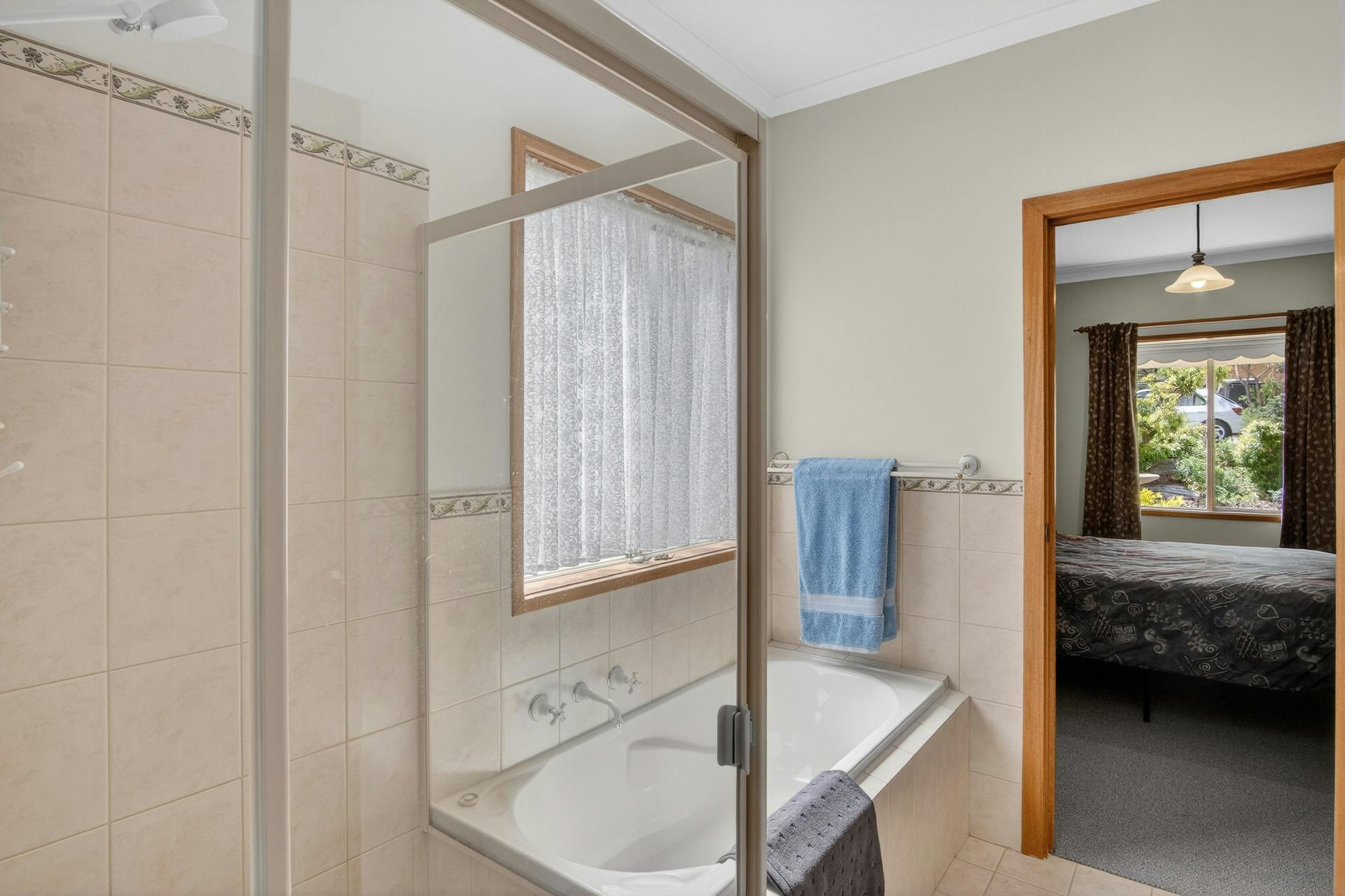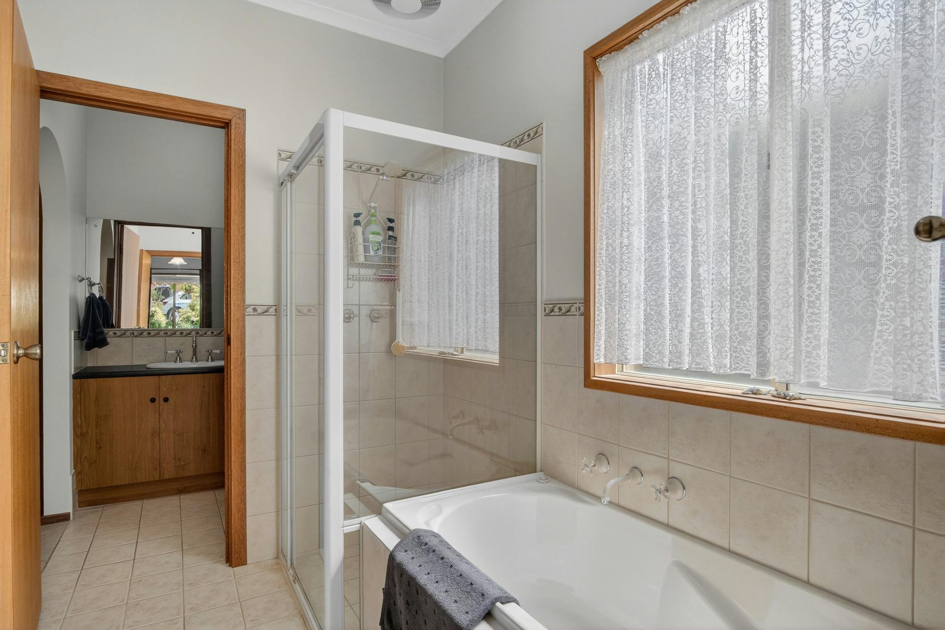 The home features three generous bedrooms, all with robes, including a master bedroom with walk-in robe and ensuite style access to the two-way bathroom. The bathroom is thoughtfully laid out with a separate bath and built-in shower, separate vanity and separate toilet - ideal for family living or visiting guests.