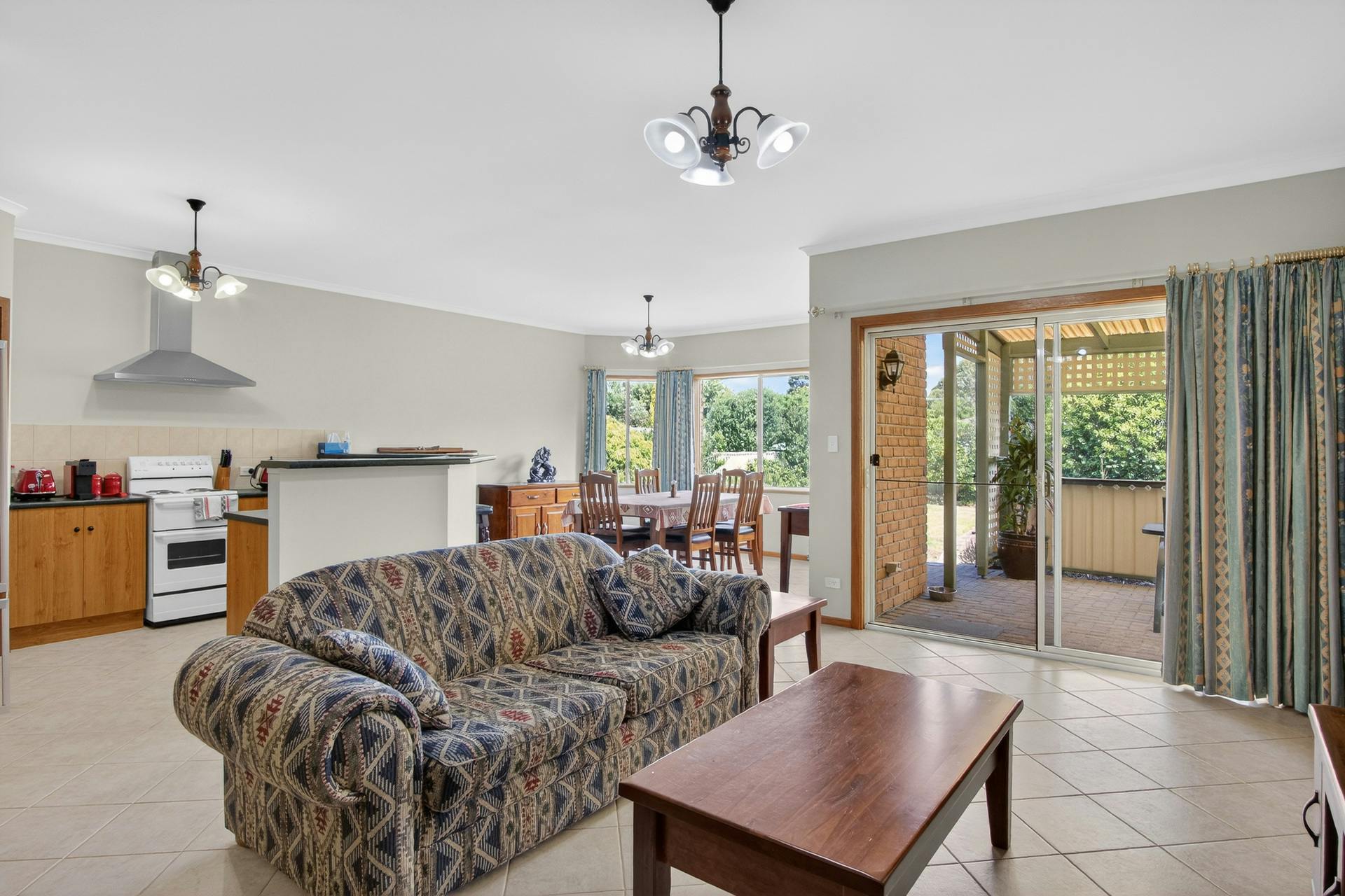At the heart of the home, the open-plan lounge, dining and kitchen area is designed for relaxed everyday living and easy entertaining. Year-round comfort is ensured with a split-system reverse cycle air conditioner. Sliding doors connect seamlessly to the covered outdoor entertaining area, perfect for weekend barbecues or unwinding with friends.