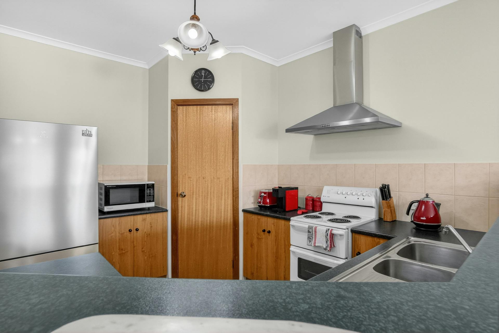 The kitchen offers excellent functionality with a corner pantry, electric stove, ample bench space and plenty of storage, making it easy to cater for family and friends. A separate laundry with direct outdoor access adds to the home's practical appeal. Excellent security with a CCTV camera system in place.