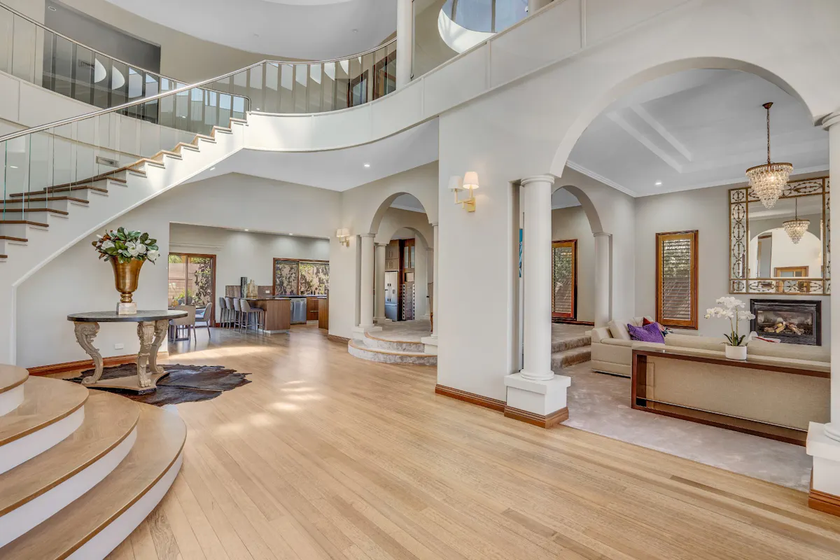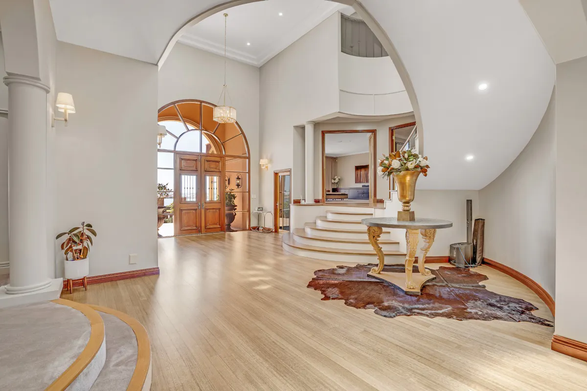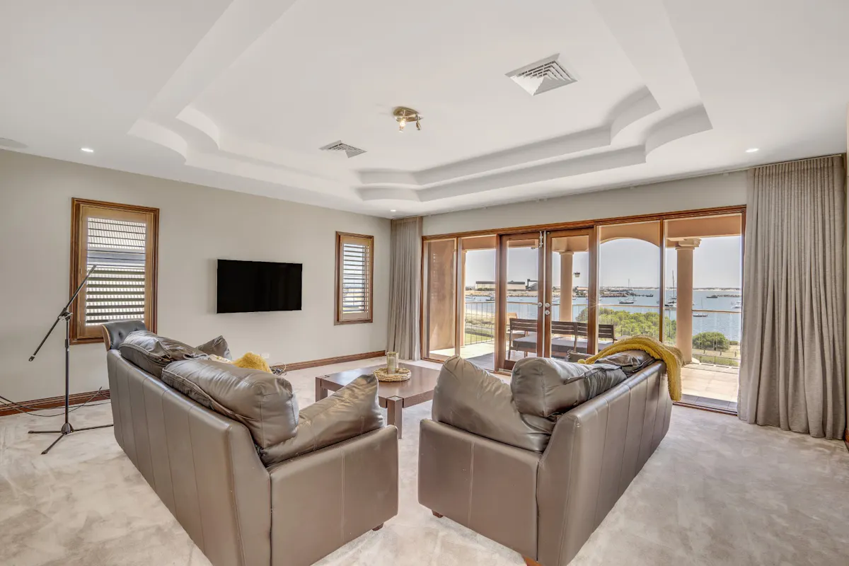 Situated in the award-winning Marlston Hill, this unique residence will have you in awe at first glance! Boasting stunning views across the Bunbury Harbour and Indian Ocean, this magnificent 5 bedroom, 3 bathroom home is a masterpiece of design incorporating arches, columns and heights of grand proportions.Large double doors framed by an imposing Jarrah wood frame open into an impressive 3 level entry hall. Spacious open plan living spaces branch off from the entry where different living zones are defined by innovative interior architecture and complemented by neutral tone walls. Extensive use of bifold Jarrah doors to the living areas encourage an indoor-outdoor lifestyle while creating a passage for cooling sea breezes. The formal dining area adjoining the lounge is central to three covered balconies overlooking the elemental beauty of the ocean and harbour.