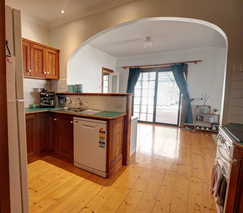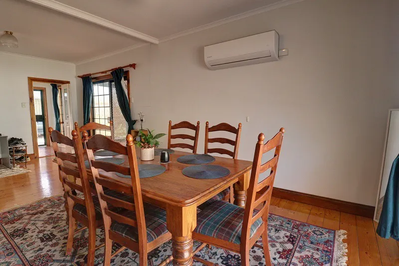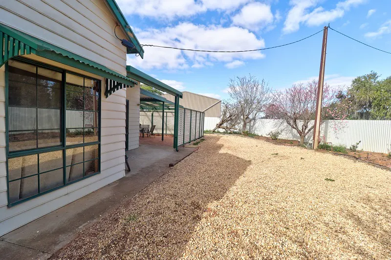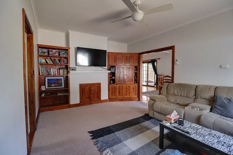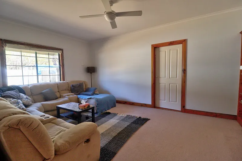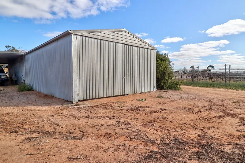 The 2/3 Bedroom home is spacious with a country feel. Open plan timber kitchen, dining/family area with polished pine floorboards, hotplates, under bench oven and dishwasher. Generous size carpeted lounge room has built in timber bookcase and corner cabinet. Great storage with built in robes to both of the main bedrooms. Main bathroom has separate bath, shower alcove and vanity, with the second bathroom having a shower alcove and vanity. Huge laundry with ample storage and double trough. Climate control consists of split system air conditioning and ceiling fans. The living area opens to a generous size undercover paved entertaining area. Two open carports, large shedding has been divided up into 3 sections, one being lined for a games/gym/family room. House is on SA and rainwater.