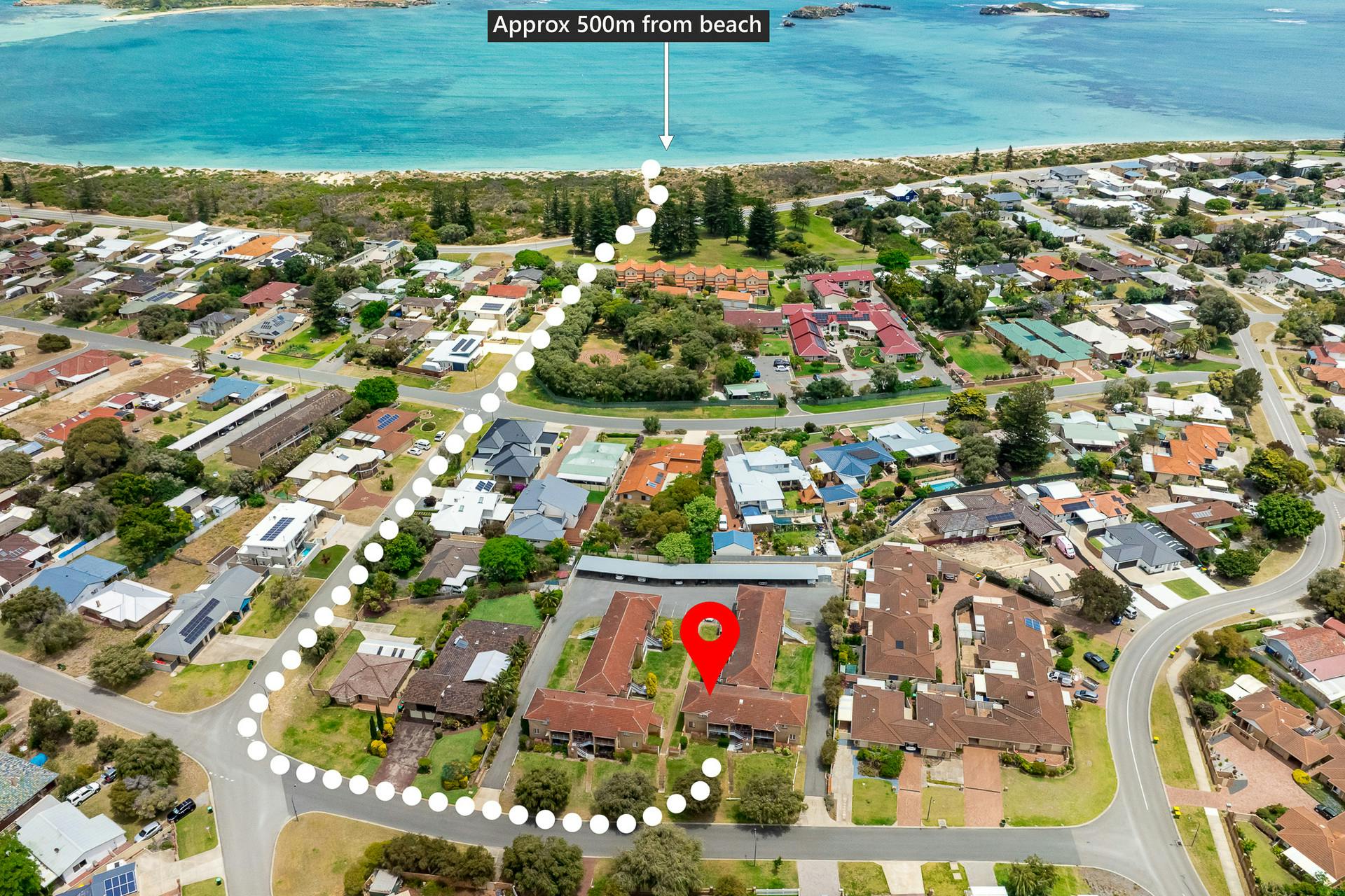 450m* to Shoalwater beach (Google Maps)