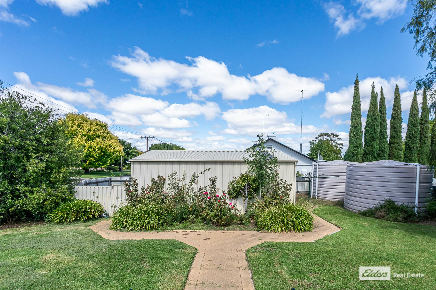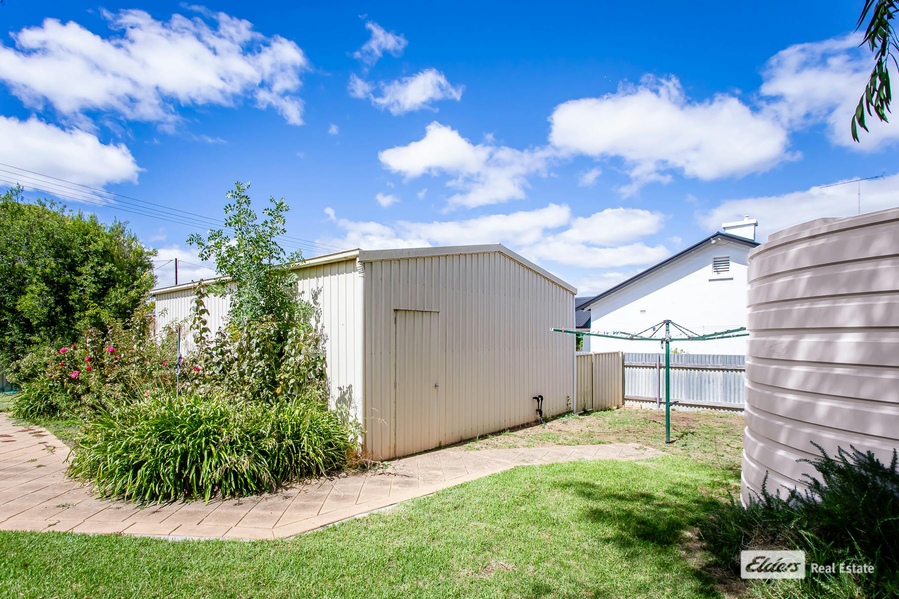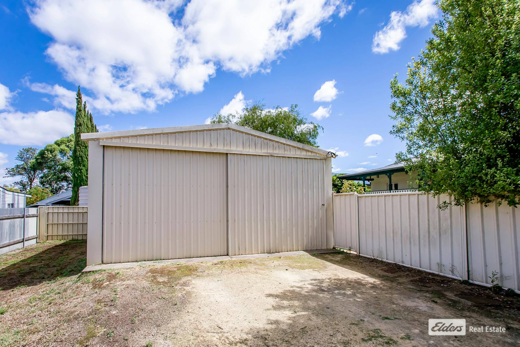 A substantial 7.5m x 6.0m shed with power and a concrete floor provides secure storage for vehicles, tools, or a workshop space. Additional features include rainwater connected to the house, secure fencing, and the convenience of being just a short stroll to the town centre.