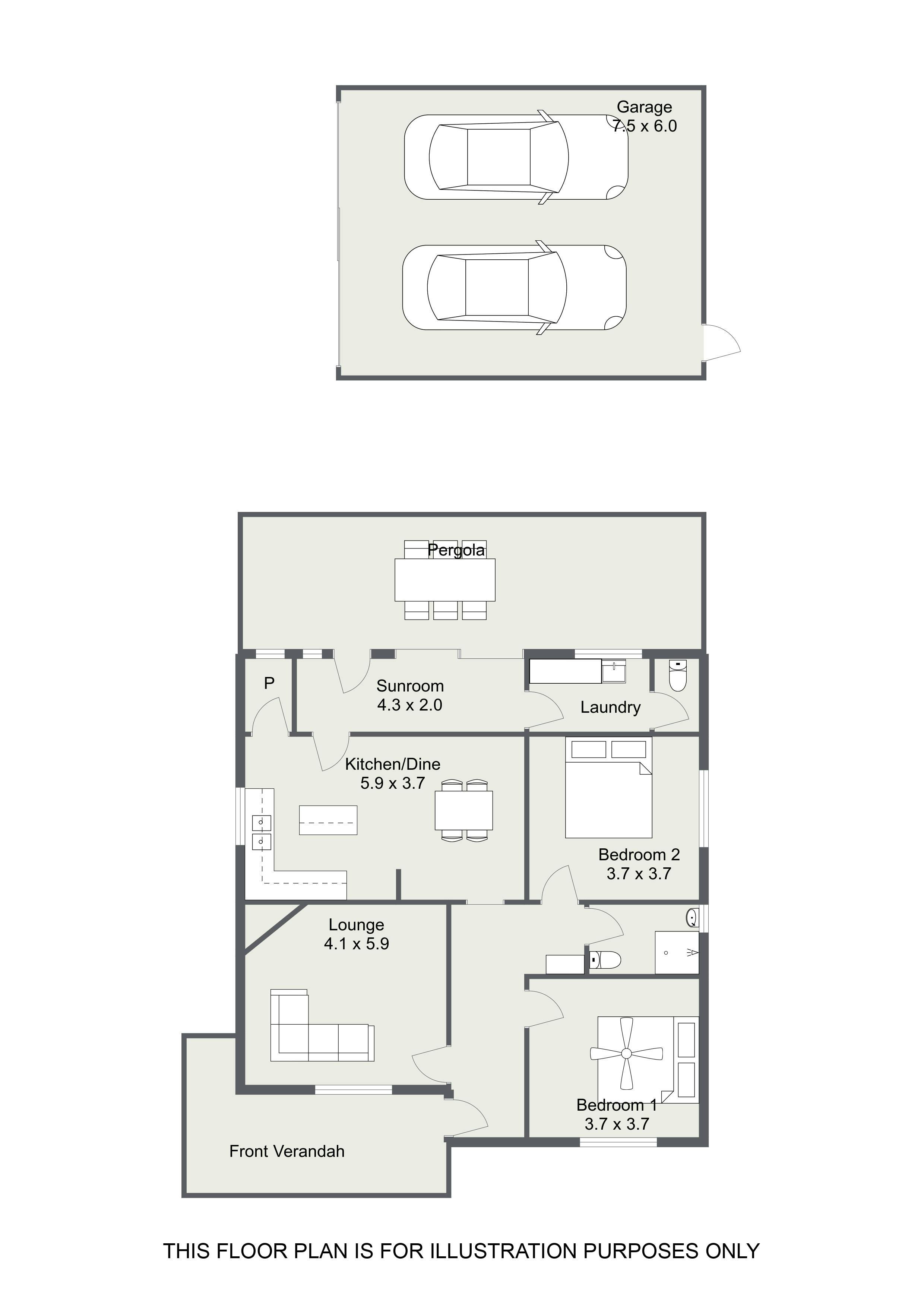 Both bedrooms are generously sized and serviced by a central bathroom featuring a shower, basin, and toilet, while a second toilet is conveniently located adjacent to the laundry. At the rear of the home, a sunroom provides valuable additional living space, perfect for relaxing, hobbies, or a home office.