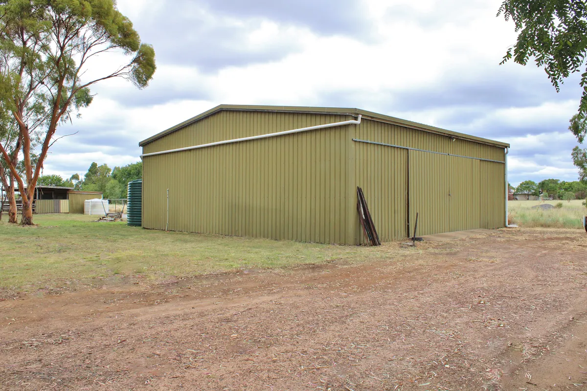 - 12m x 12m x 4m high shed, 15amp power, lights & 22,000L rainwater tank