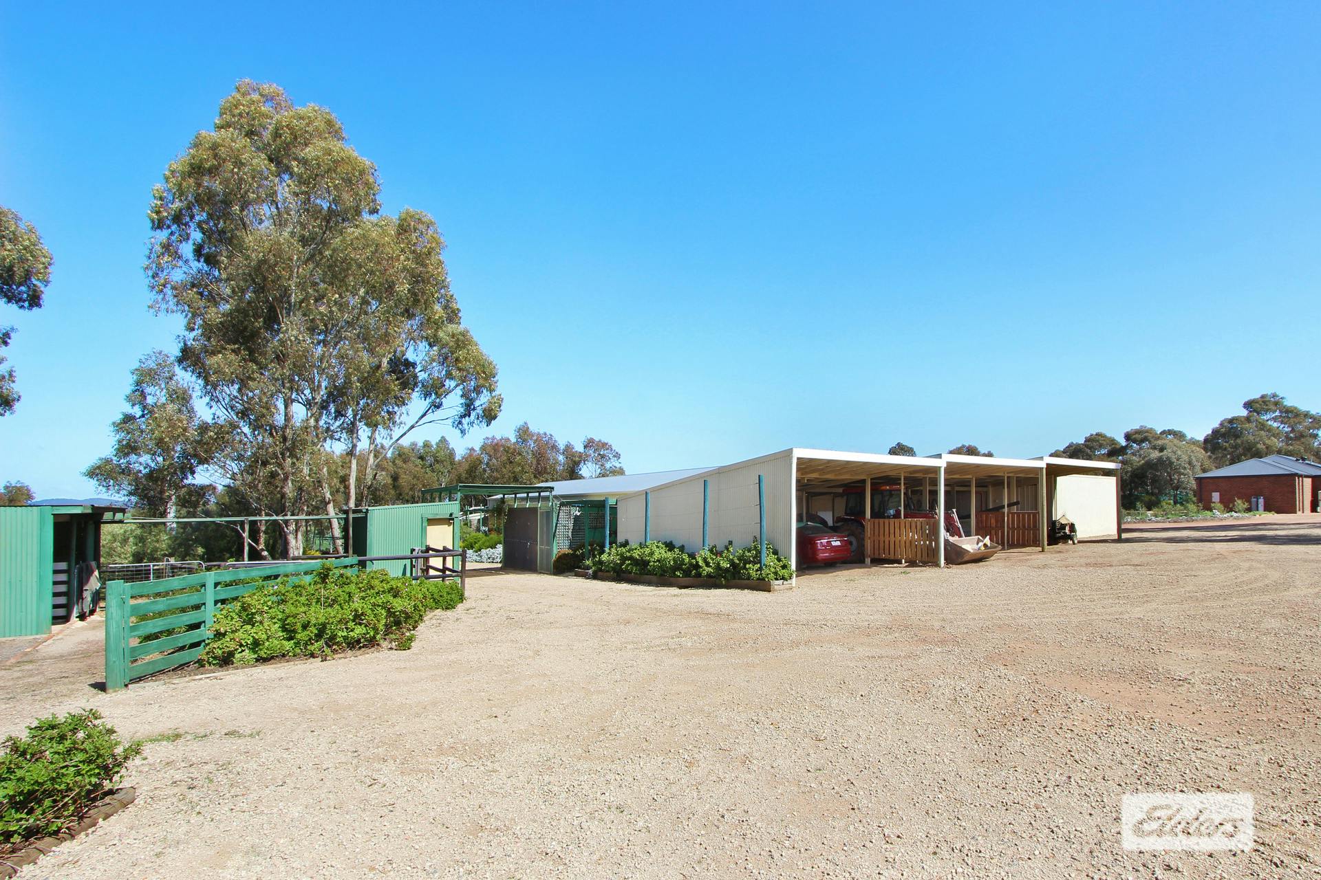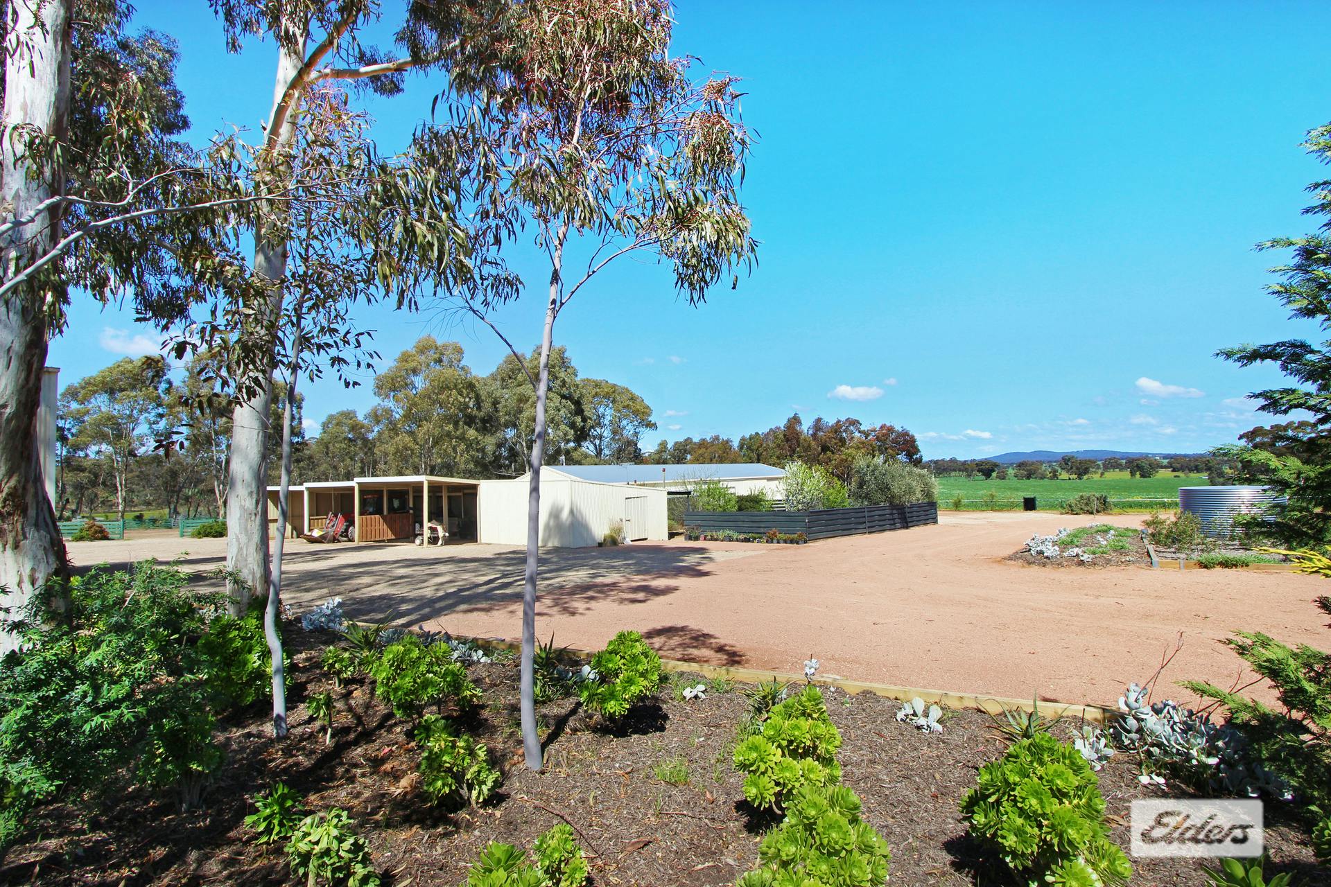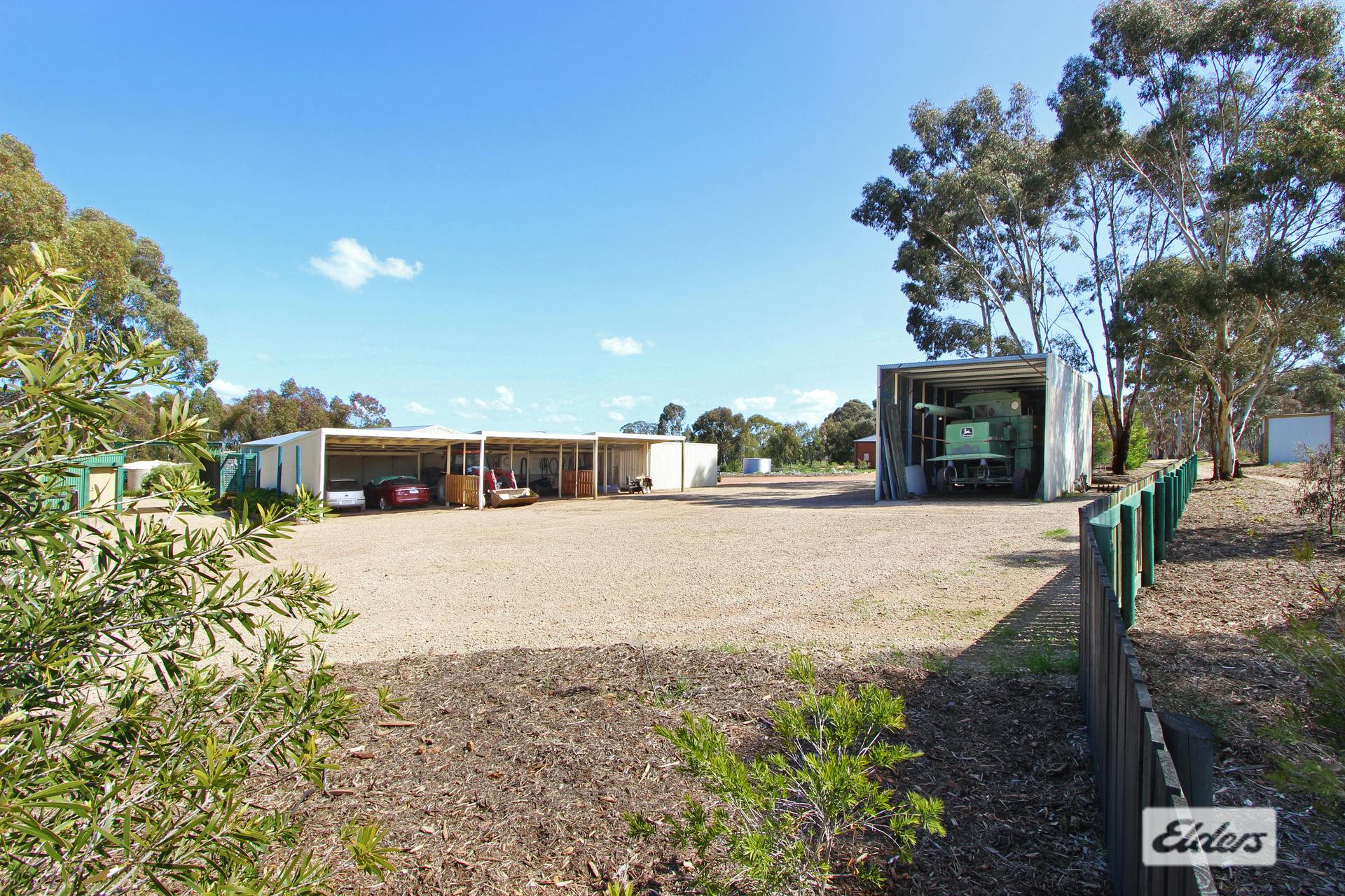 School bus pickup is available at the front gate. Good kangaroo proof fencing is constructed of ringlock with steel posts and timber stays. Several tanks provide a rain water storage capacity of around 163,000L, this is collected from all the rooves on the property including the goat shed. Other shedding on the property includes a 6 bay machinery shed, an open ended shed big enough to store a header or a prime mover, and a 30m x 9m colorbond shed with a 3.2m high sliding door towering to 4.4m at the ridge. This shed has a lights, power and a concrete floor, a Mezzanine floor with pull down stairs, and some lined space as well. Horse facilities include a round yard with 3 holding yards adjoining, a lock up stable with a yard, and some other sundry shedding which can be used as hay sheds, a feed shed and a tack room.