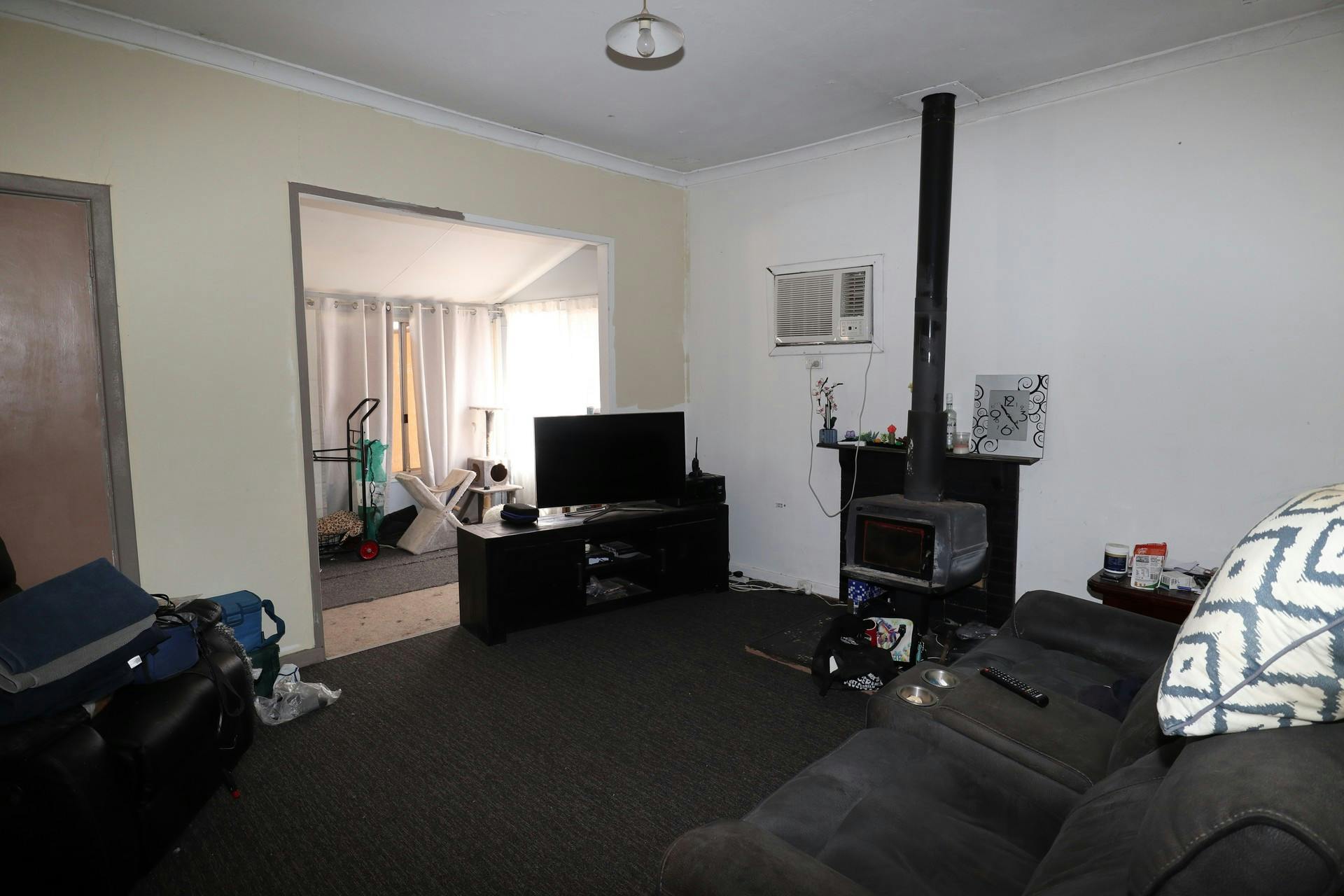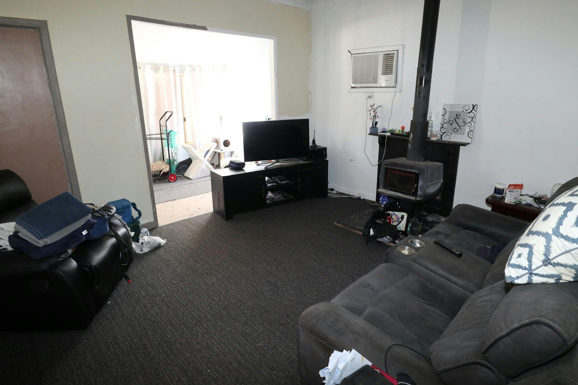 Inside, the home welcomes you with a comfortable lounge area featuring a wood fire and reverse cycle air conditioning for year-round comfort. There are three bedrooms, along with a small enclosed patio area at the rear of the home, adding extra usable space.