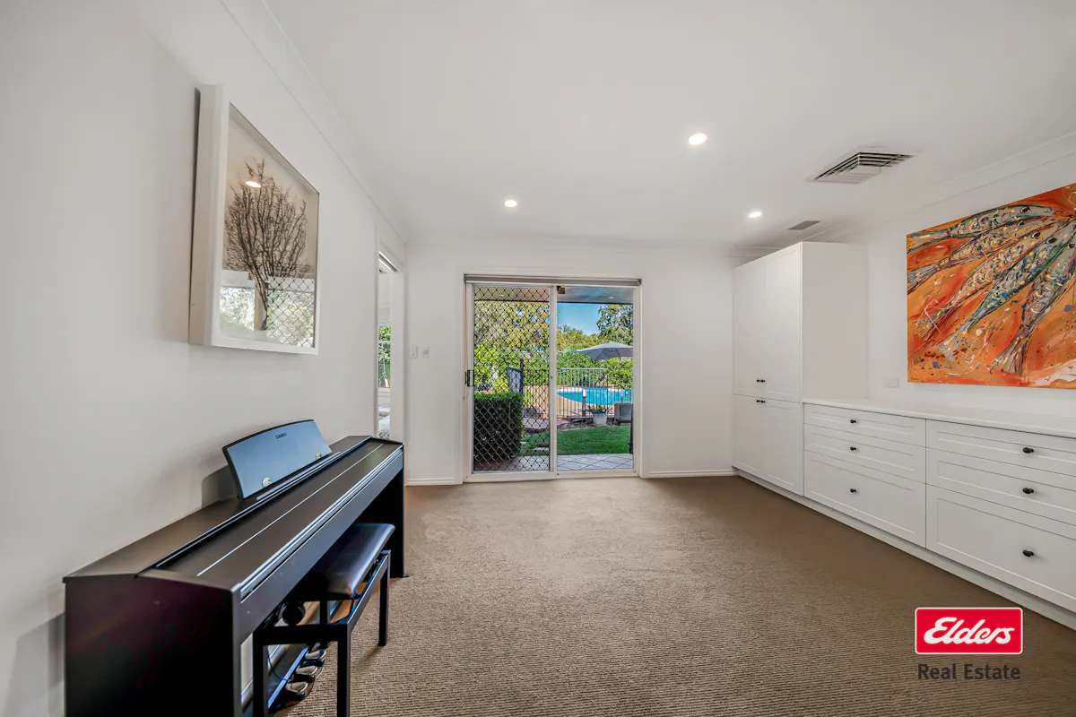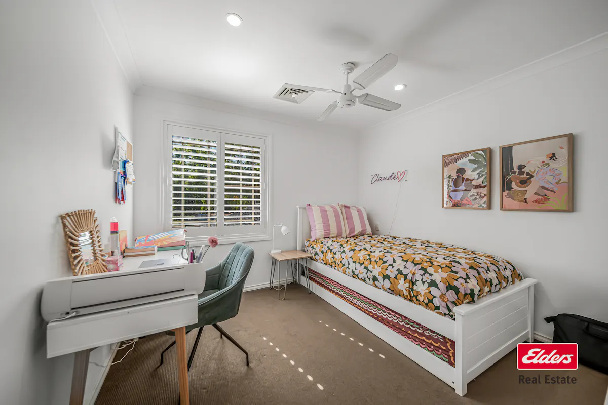Tucked away on one of South Dubbo's most picturesque, tree-lined streets in Dubbo, this storybook residence effortlessly blends space, warmth, and timeless appeal. Designed for flexible family living, it offers a versatile four-bedroom layout, serviced by three bathrooms and complemented by multiple generous living zones, while a dedicated home office provides the option of a fifth bedroom or private teenager's retreat. Beyond its charming façade, the established backyard reveals a tranquil oasis, where mature trees and lush gardens frame a paved entertaining area complete with a custom-built open fireplace-perfect for cozy winter evenings-while the in-ground pool creates an inviting escape throughout the warmer months. Finished with a double garage, automatic irrigation, and captivating street presence, this enchanting home delivers refined living in one of South Dubbo's most sought-after settings.Features include: