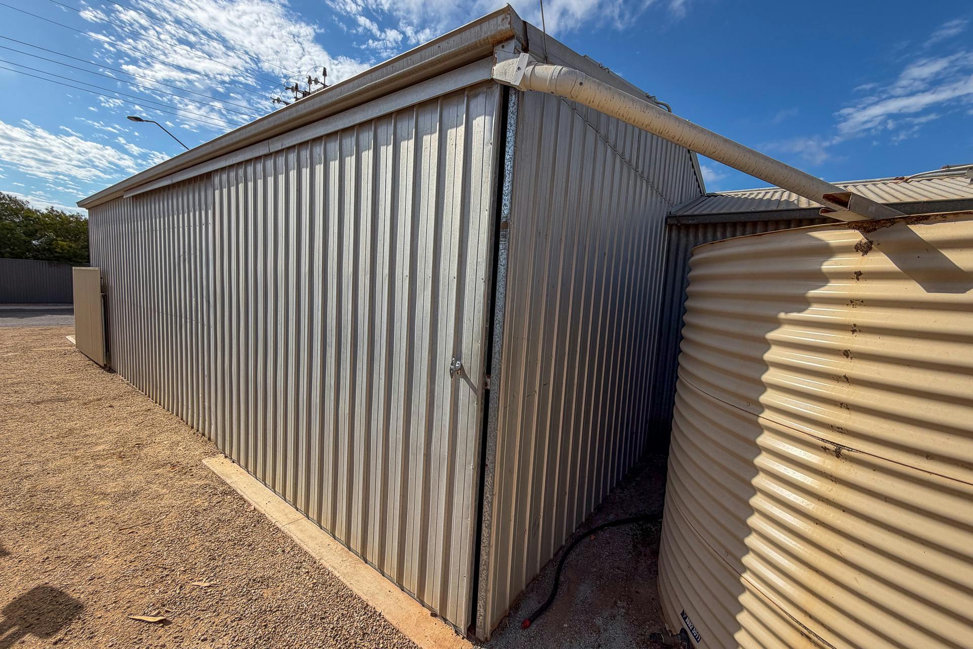 - Carport style shed with electrical roller door on the road side and back sliding doors