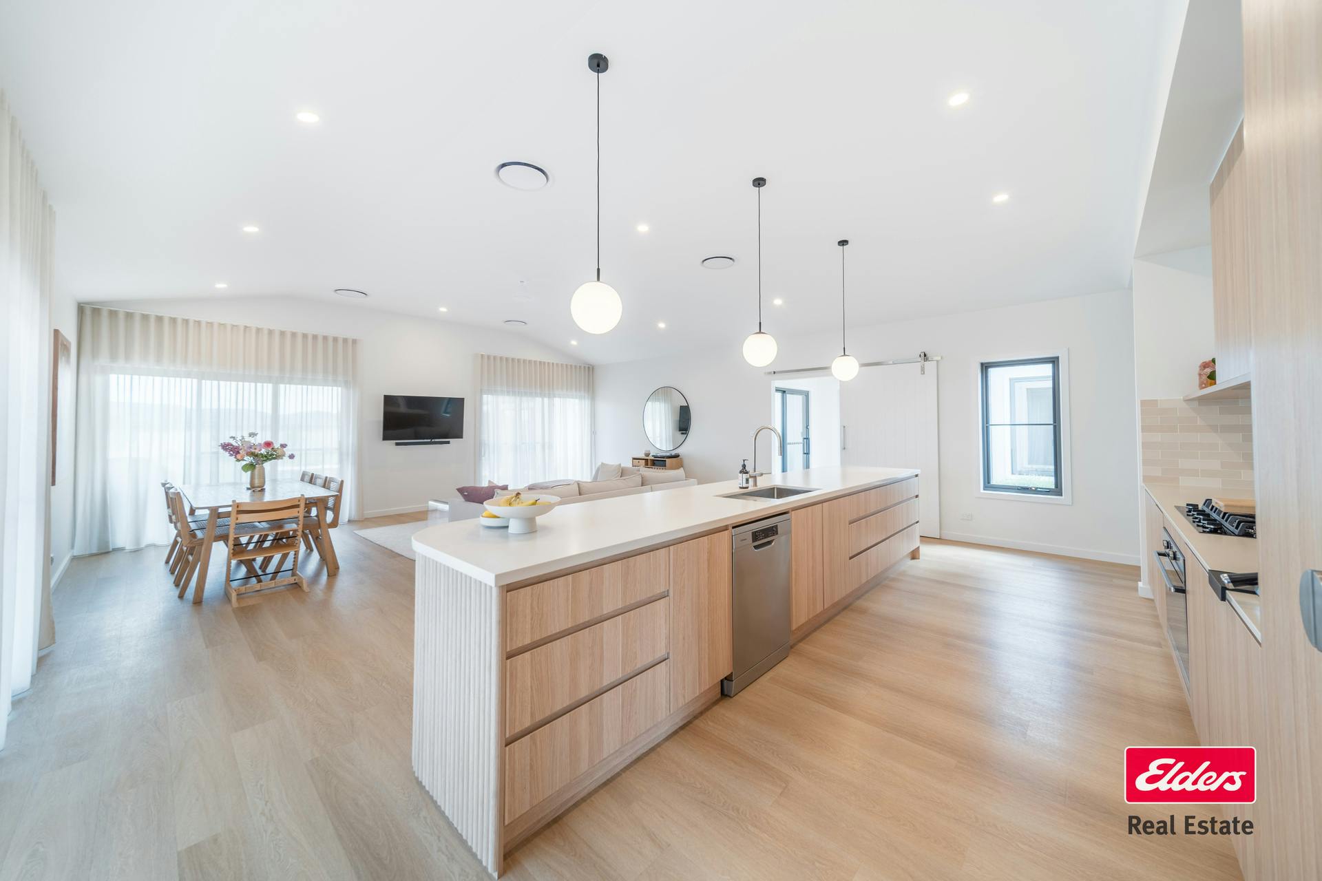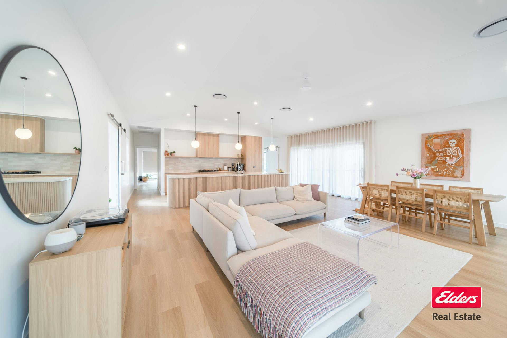 Commanding immediate attention from the street, this master-crafted residence showcases striking architectural lines, elegant proportions and exceptional presence, all set on a generous half-acre parcel in Macquarie View. With no neighbour opposite, the home enjoys a rare sense of openness and calm from the outset.Step through the impressive glass feature front door entry into a home defined by quality. Premium finishes, thoughtful design and meticulous craftsmanship are evident throughout. The heart of the home is the light-filled main living space, crowned by a soaring cathedral ceiling that creates a breathtaking sense of scale and architectural beauty.