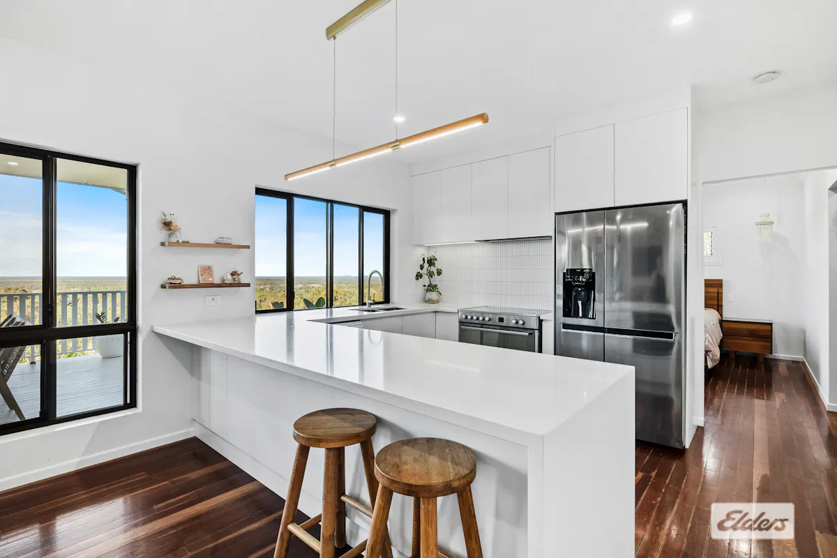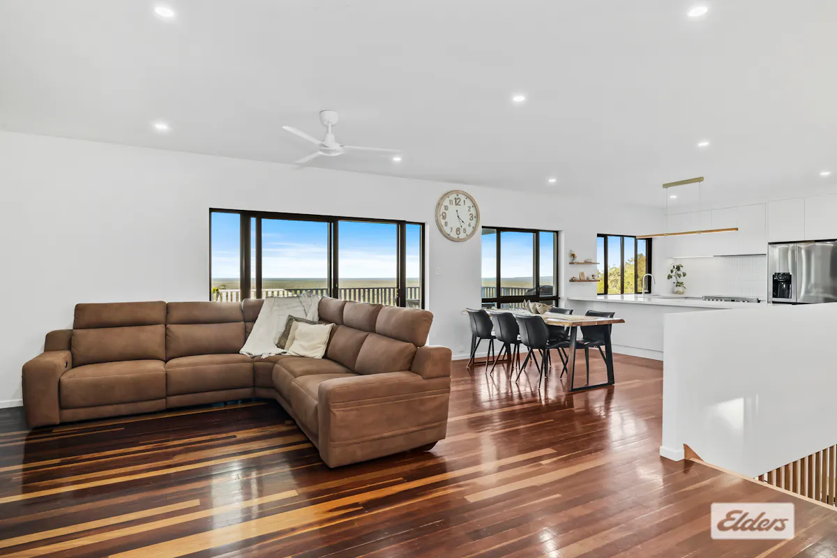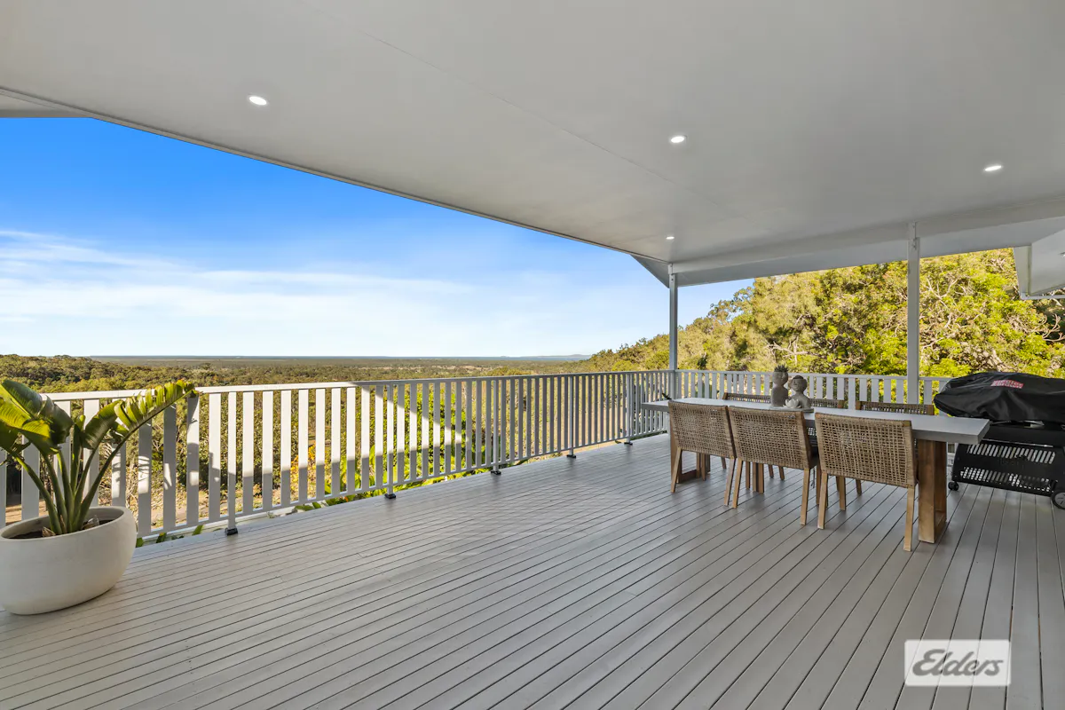 Positioned high on 25.6 acres in one of Farnborough's most tightly held rural pockets, 195 Howes Road delivers a rare combination of scale, privacy and uninterrupted coastal outlook. Capturing sweeping valley views that roll out to Farnborough Beach, this is a property where the setting does the talking. Recently renovated throughout, the double-storey residence has been thoughtfully designed to maximise both aspect and functionality, with the upper level forming the heart of the home. Here, open-plan living and dining is centred around a well-appointed kitchen featuring stone benchtops and a walk-in butler's pantry, all flowing seamlessly to an expansive balcony that takes full advantage of the elevated position and coastal views. The upper level also comprises three bedrooms and two bathrooms, including a spacious master suite complete with walk-in robe and ensuite.Downstairs provides excellent flexibility for a range of living arrangements, offering a large rumpus room, dedicated study and a third bathroom, ideal for extended family, guests or working from home. The home is fully air-conditioned with ceiling fans throughout, ensuring year-round comfort, while the recent renovations provide a clean, modern finish ready to enjoy immediately.