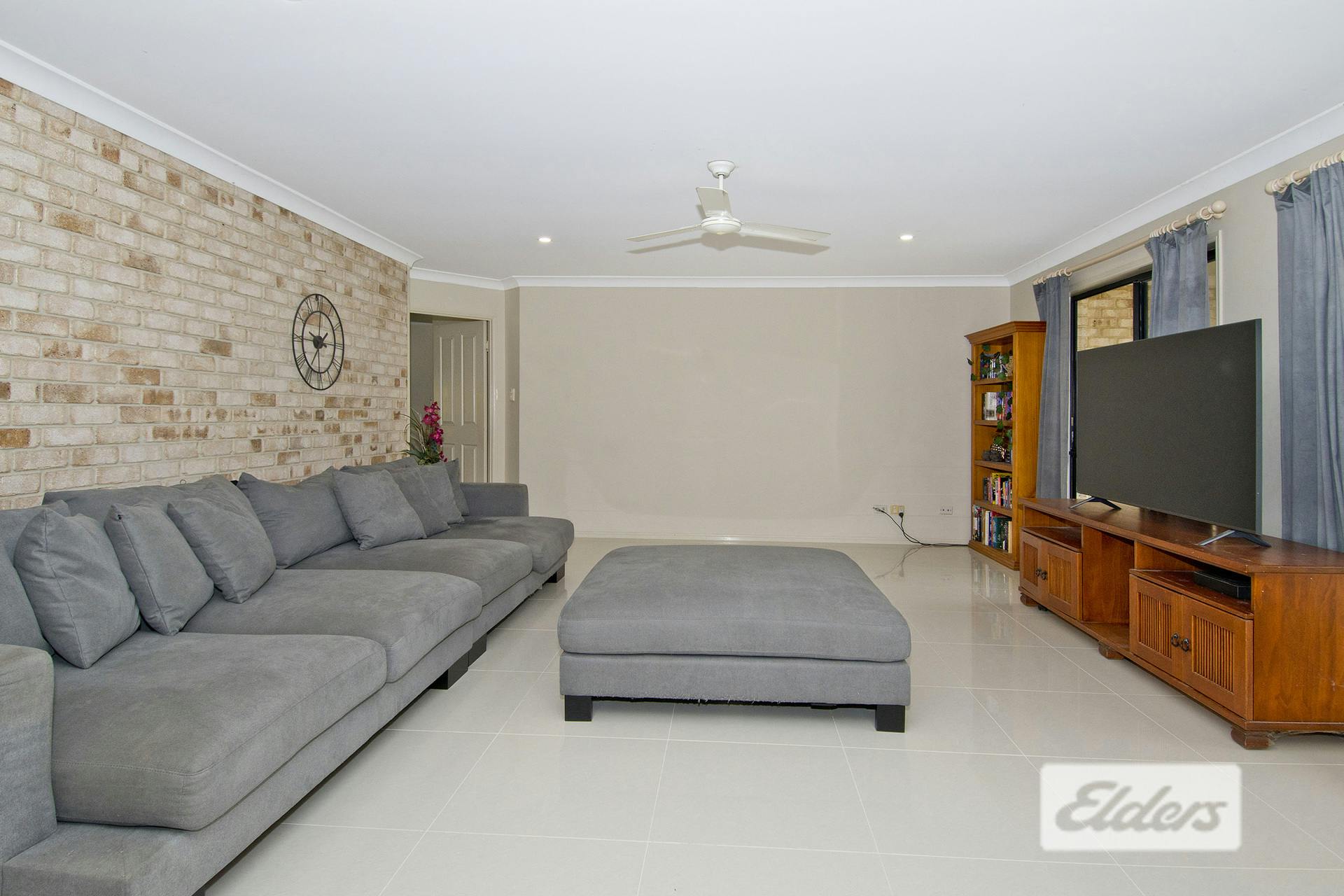 Boasting another big room is the lounge room and formal dining room with featured brick wall and then as you move through the home there is the large open plan dining and kitchen. All these rooms boast lovely cream tiles and there is air conditioning too.