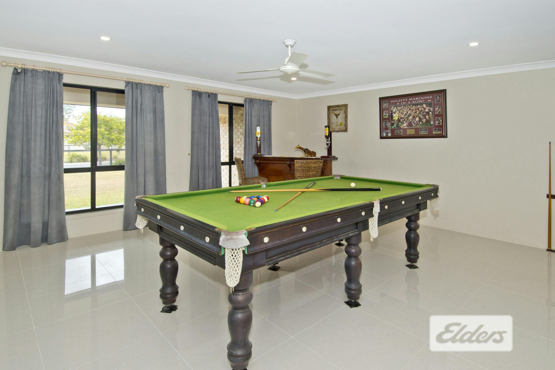 This home is sure to impress with its large living areas!When you enter the home, on the left is a large size room which houses the billiard table and bar -it's a perfect spot to hit a ball or two and wind down after a hard day.