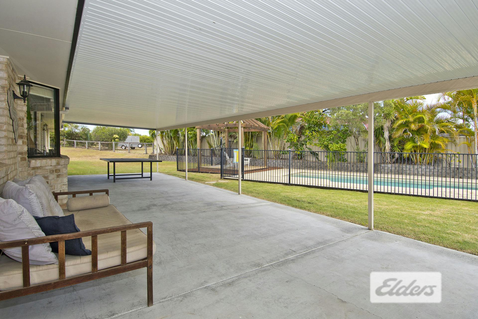 From the dining and kitchen you go out to a huge covered entertainment area- this looks on to the sparkling inground pool and the large shed (approx 12mx 6m wide) and it's nice and private too, just perfect for those large family and friends get togethers.