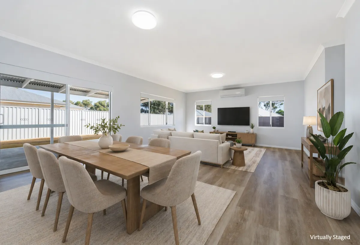 "Please note that some images used in the marketing of this property include digital staging through the use of virtual furniture, décor items and styling prepared using artificial intelligence ('AI'). Where possible, such images will be marked to identify the use of AI. Furnishings, décor items, and styling elements digitally added are for illustrative and promotional purposes only to help demonstrate how the rooms and/or spaces within the property could/may be utilised or look. The photographs may not depict the property's current condition, features, layout, or surroundings. Prospective purchasers should undertake and rely on their/its own inquiries and physical inspection of the property to understand the condition, layout, dimensions and the like. Elders does not accept any responsibility or liability for any reliance placed on AI-generated or digitally altered images."