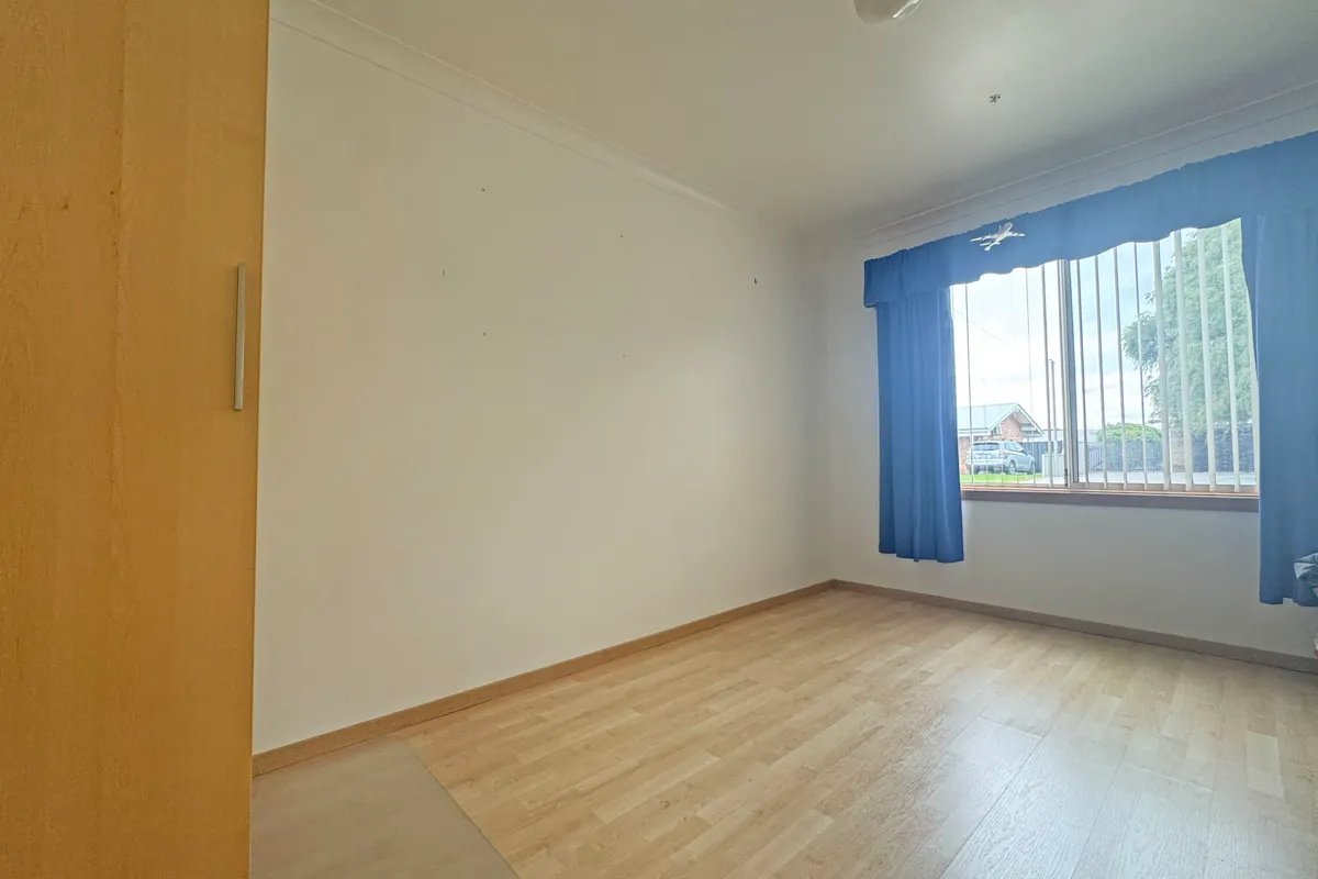 - Primary bedroom, lino plank wood look flooring, dual aspect windows, double built-in robe, single cupboard