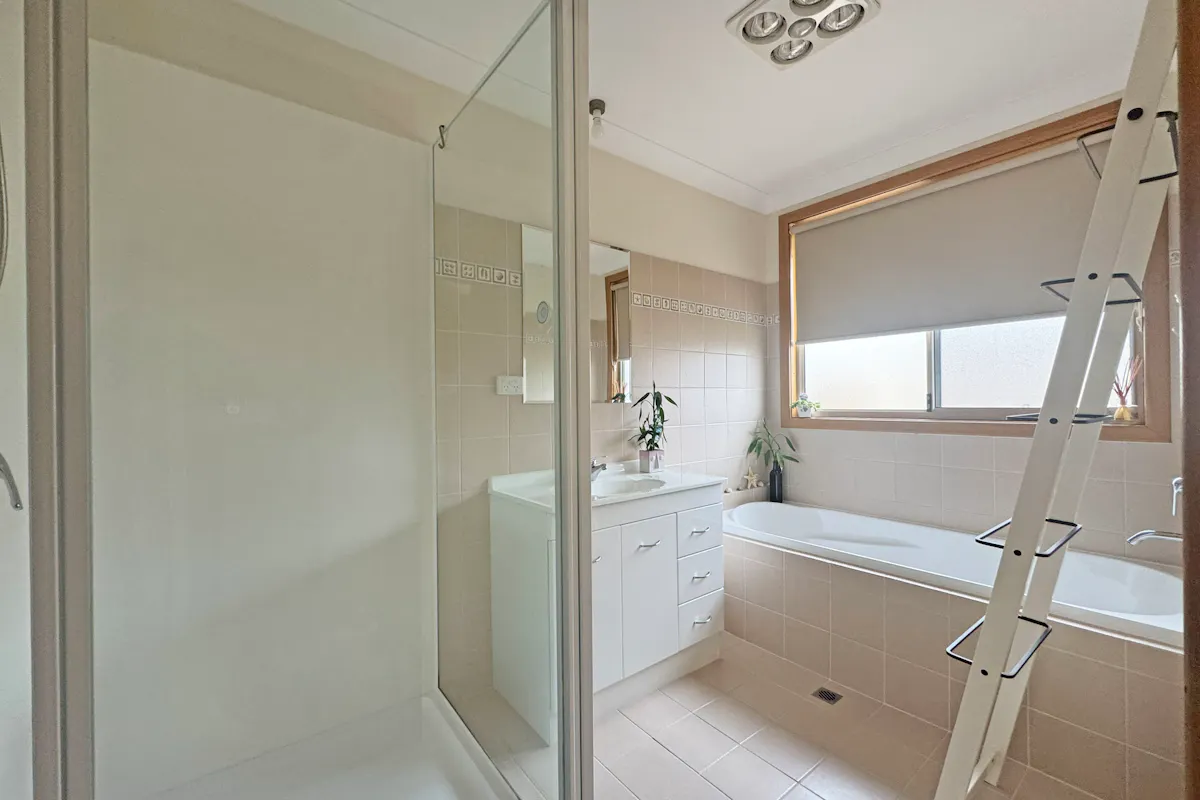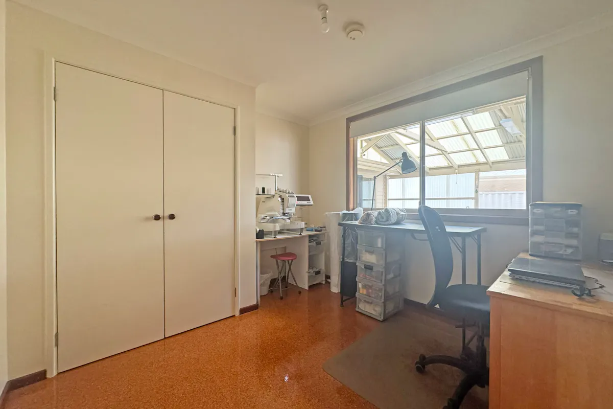 Positioned at the rear of the home, the primary bedroom includes double built-in wardrobe, single cupboard and a private ensuite. Two additional bedrooms also feature built-in robes, while a fourth versatile room is ideal for guests, a home office or hobbies. The central bathroom includes a bath, shower and vanity, with a separate toilet.