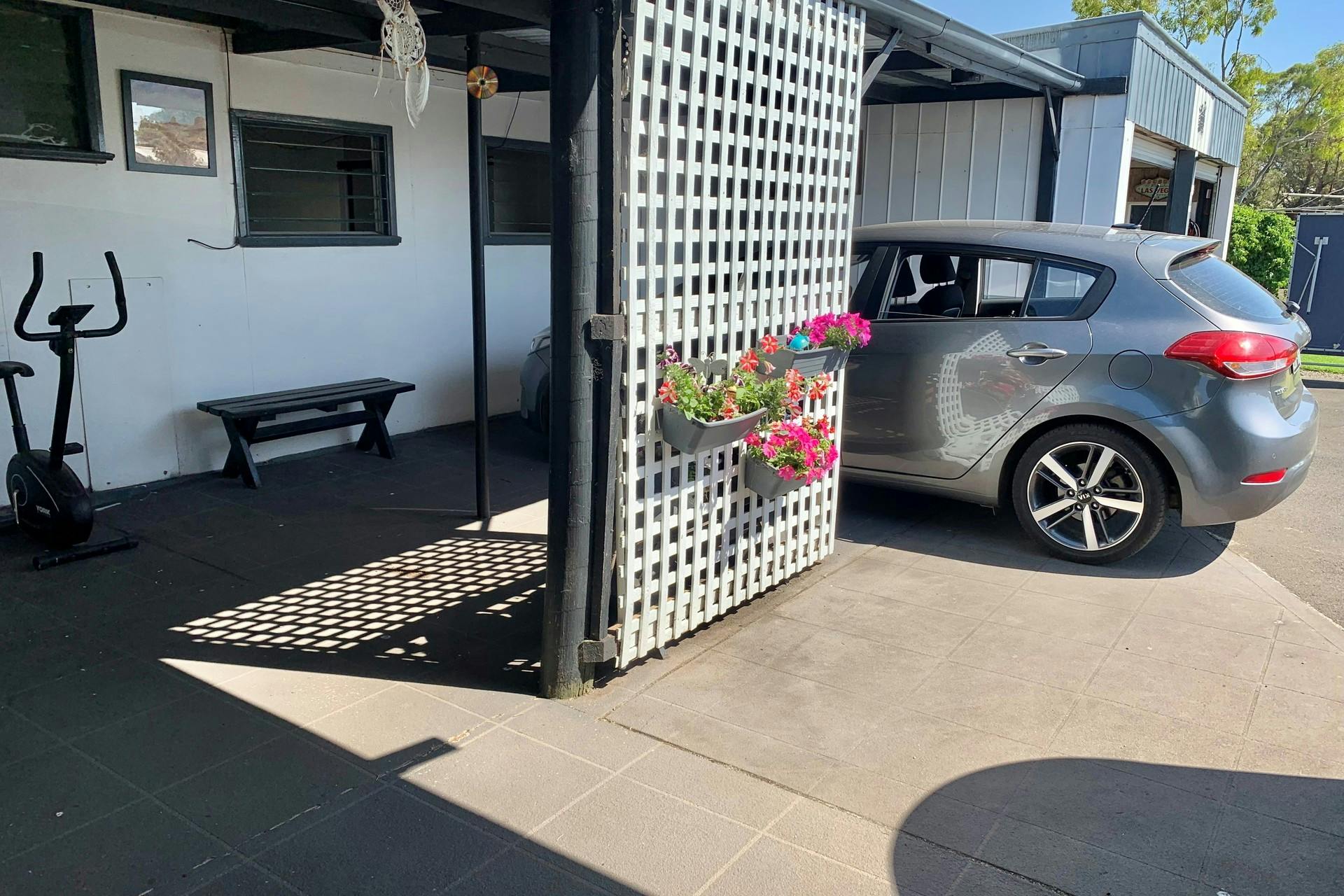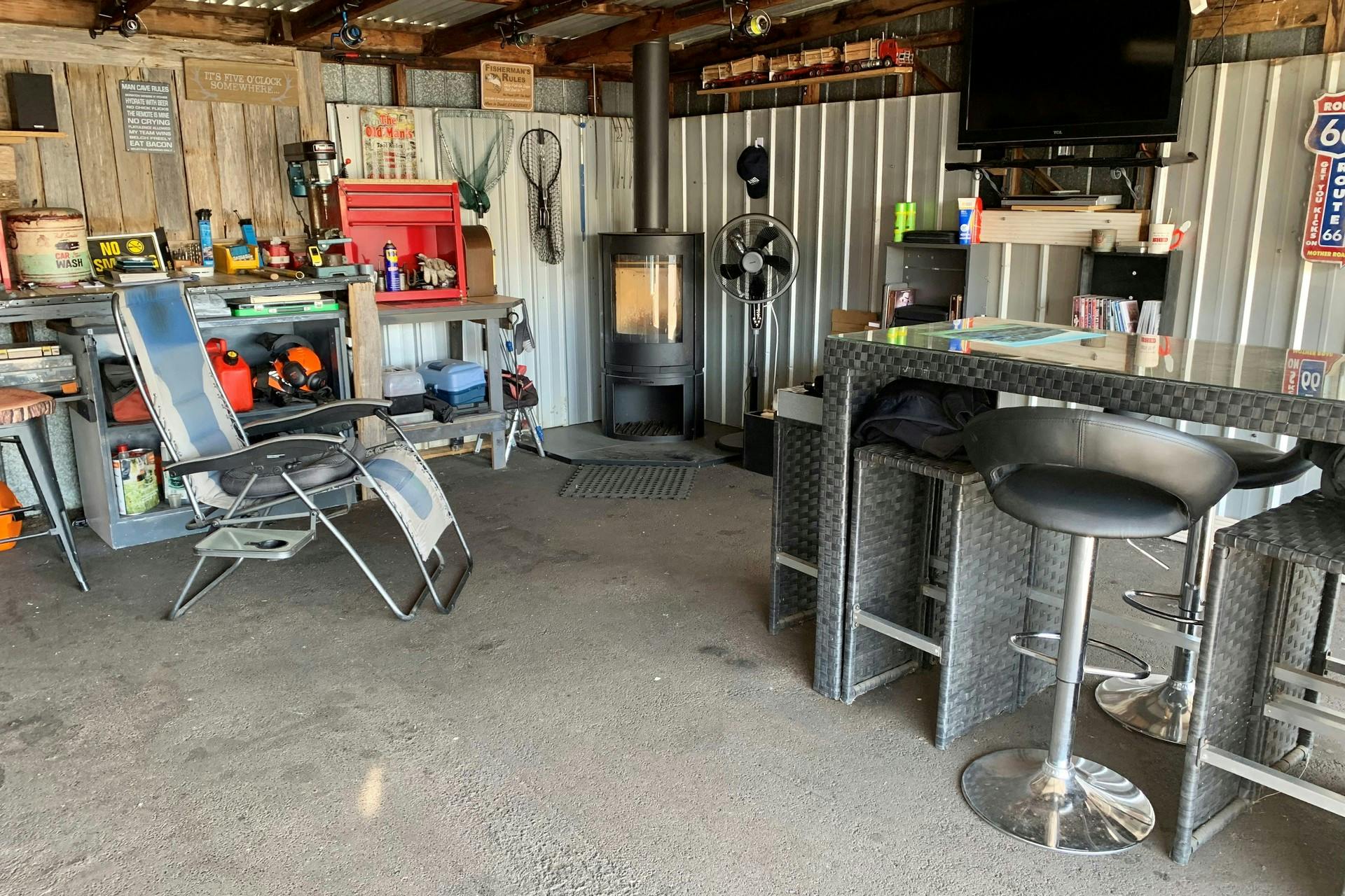 The double lock up garage has been converted to a man cave with all the comforts and plenty of storage. There is more than ample parking for vehicles and caravans.